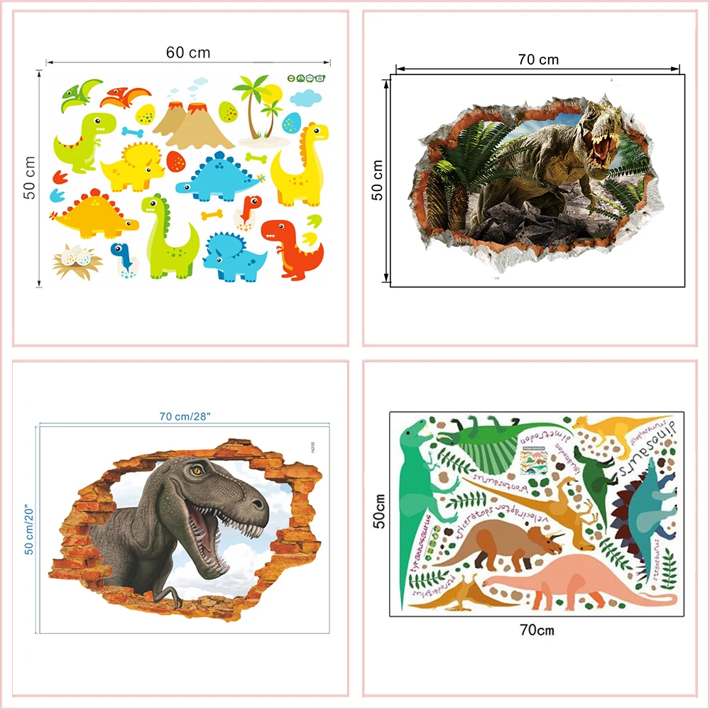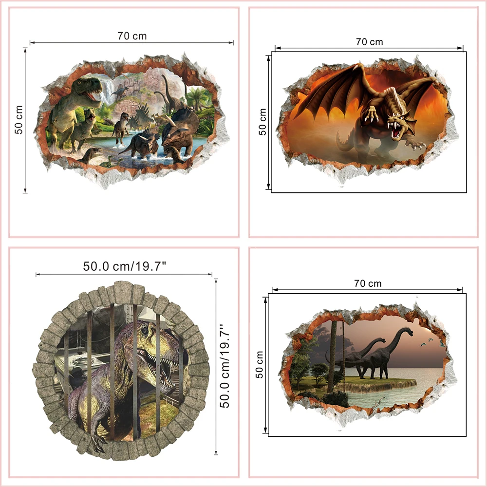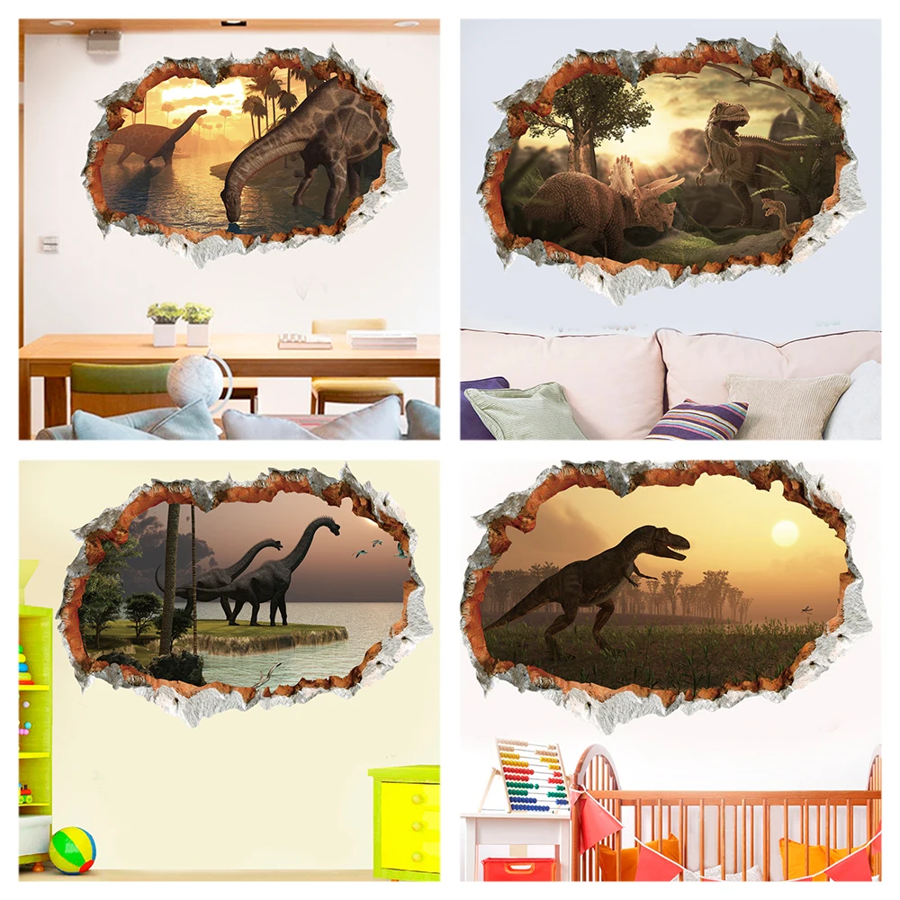 Новое поступление, 3d наклейки на стену с динозаврами, украшение для дома, яркие разбитые отверстия, животные, роспись, искусство для мальчиков, детской комнаты, ПВХ наклейки, плакаты сделай сам