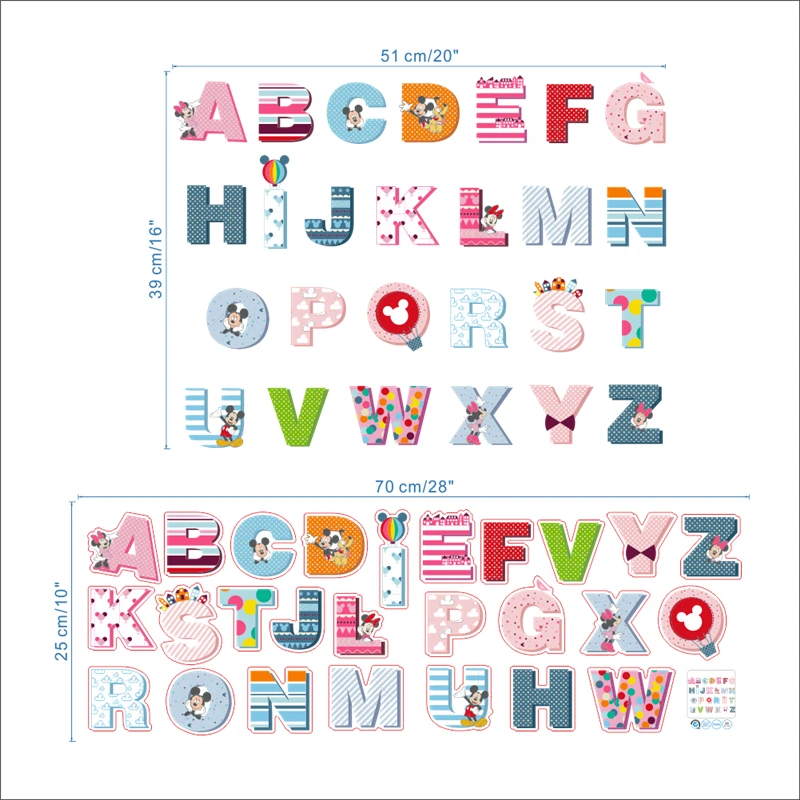 Мультфильм Микки и Минни красочные 26 букв алфавита настенные накле...