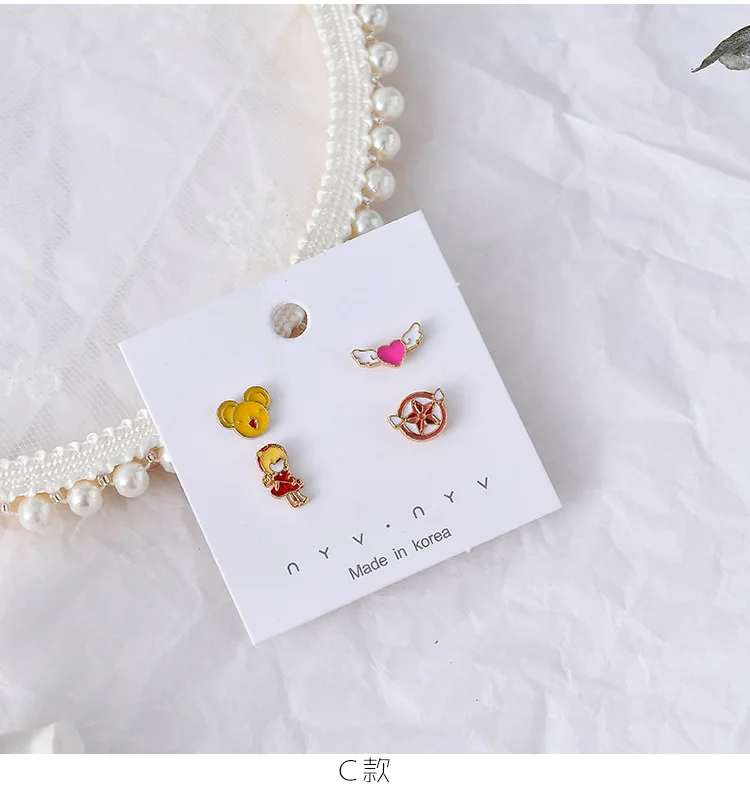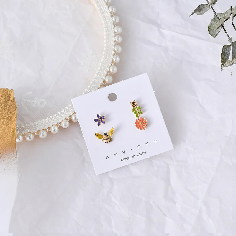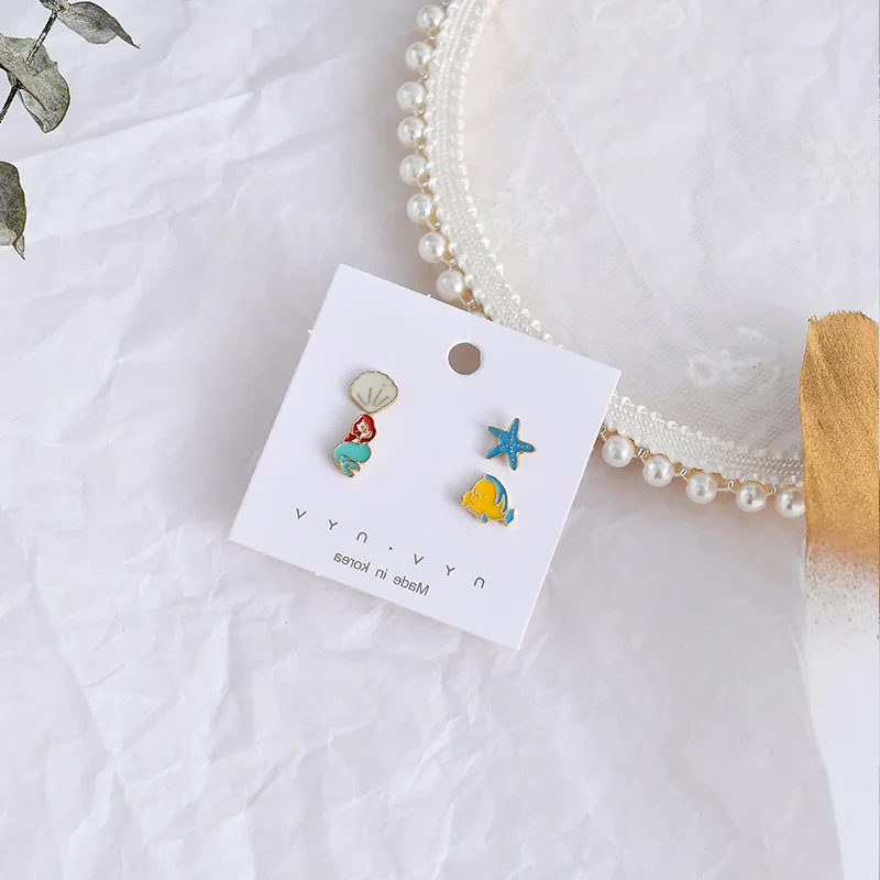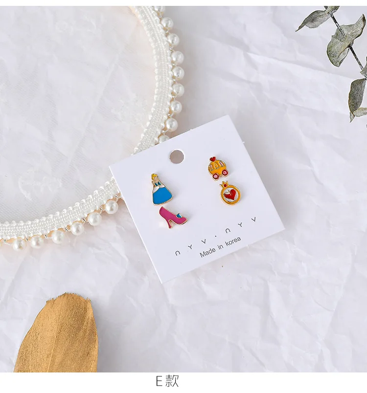 2 парыкомпл. мини серьги-гвоздики Мультяшные ассиметричные серьги цветы Звезды милые детские серьги