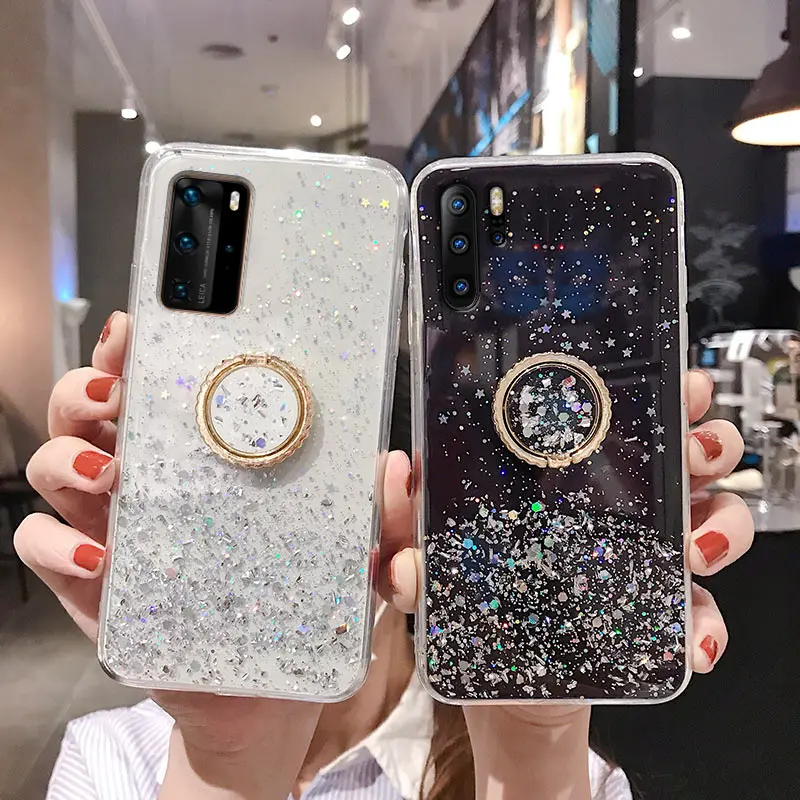 Блестящий чехол-подставка с кольцом-держателем для Huawei P10 P20 P30 P40 Pro Mate 40 30 20 Lite 10 Nova 2I 3I 5T 8 8SE Прозрачный чехол для телефона