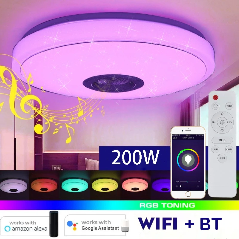 Умный потолочный светильник, 200 Вт, современный светильник с дистанционным управлением, поддержкой Wi-Fi, Bluetooth, музыкой, RGB, для Alexa и Google Assistant