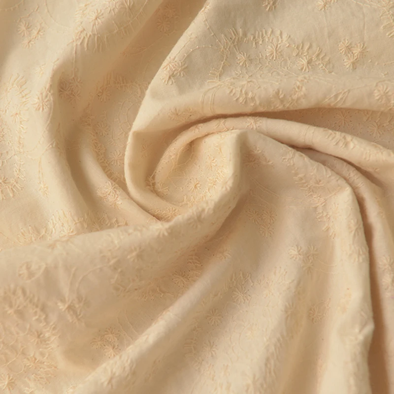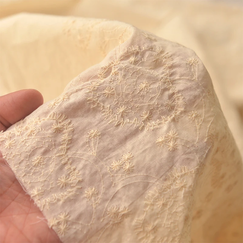 Высококачественная хлопковая ткань светильник-бежевая ткань с полной вышивкой, свежее пасторальное платье, платье, занавеска, материал Ципао