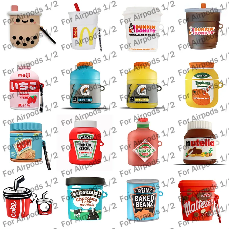Чехол для AirPod 1 2, мягкий силиконовый чехол для наушников Apple Airpods, чашка для напитков, апельсиновый сок, кетчуп, шоколадный Кокс, кофе, чай