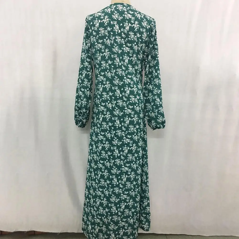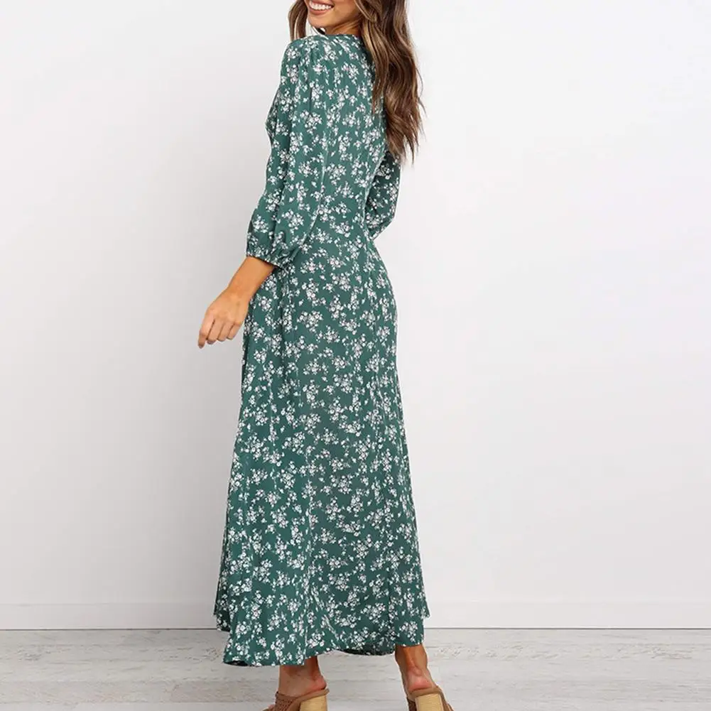Женское шифоновое платье-макси до щиколотки, элегантное платье с длинным рукавом, V-образным вырезом и высокой талией для весны