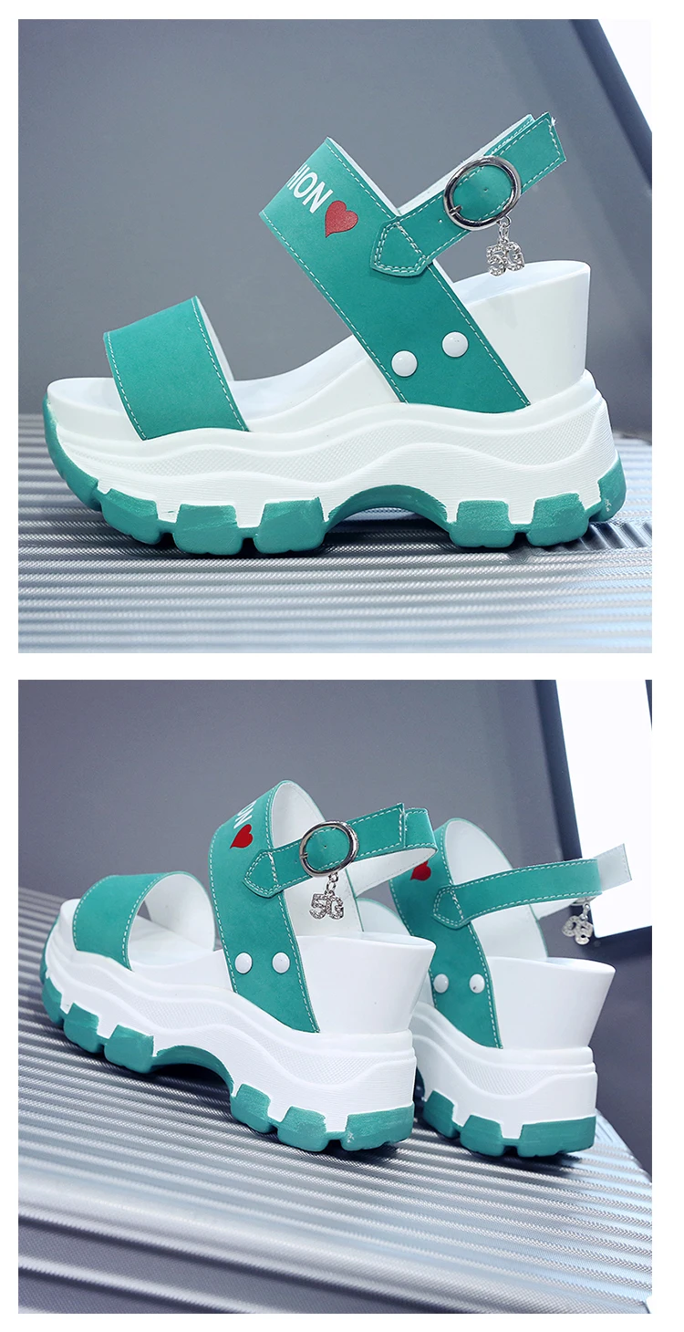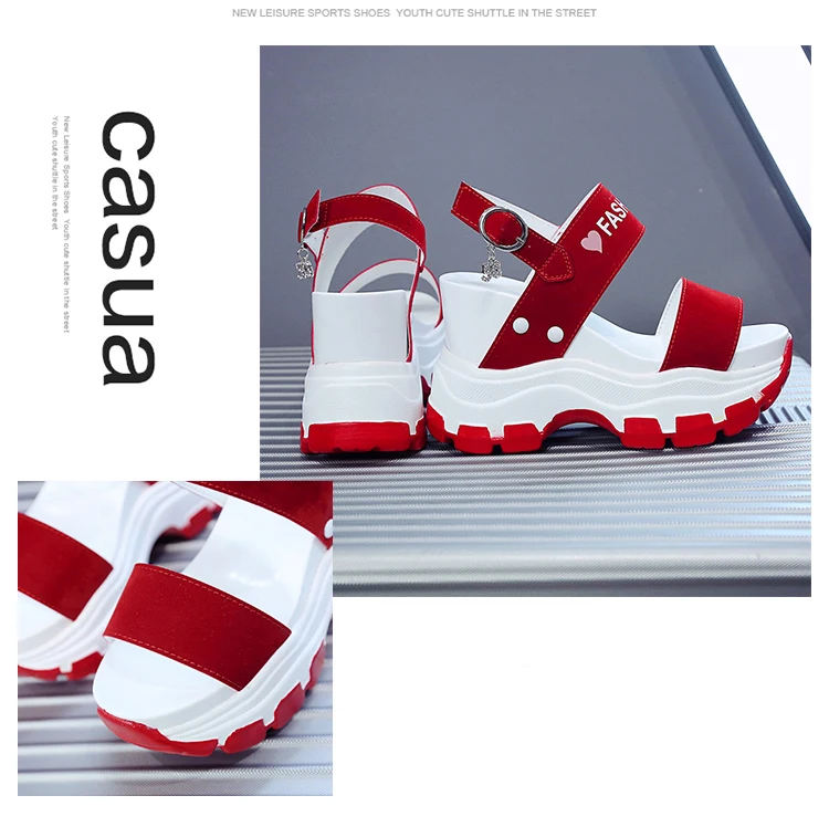 Женские босоножки на платформе, красные сандалии на высокой массивной танкетке с открытым носком, лето 2022