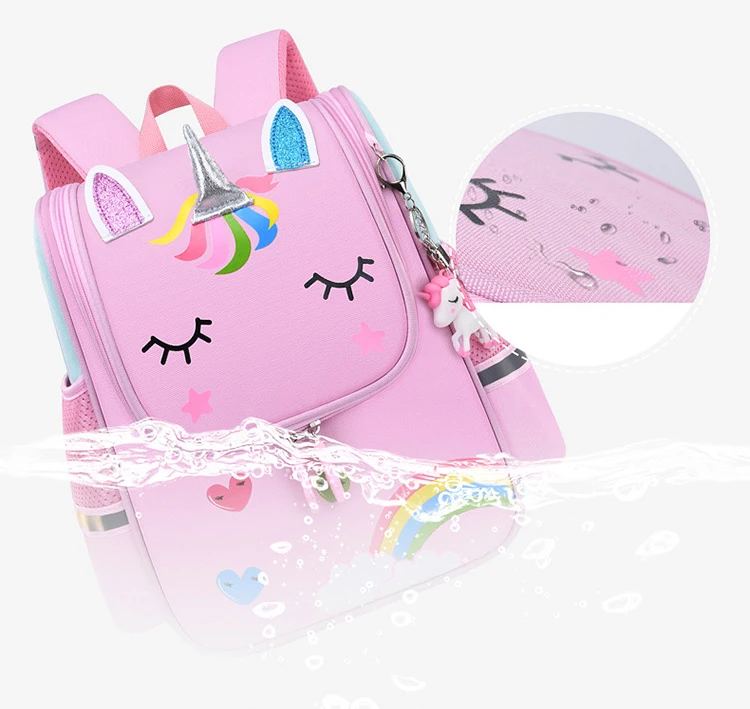 Рюкзак для девочек, нейлоновый, с принтом розового единорога, водонепроницаемый