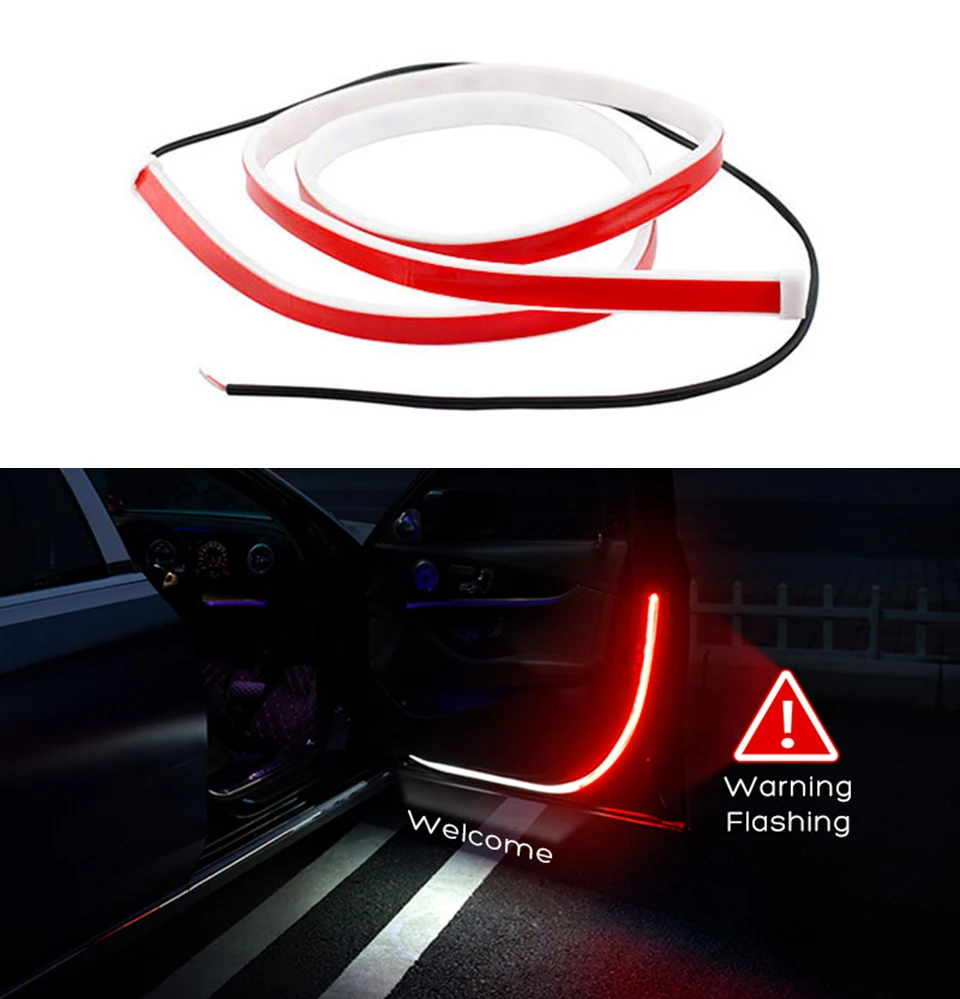 1 шт. светодиодная лампа полосы автомобиль открывания двери Предупреждение светодиодный свет Добро пожаловать Декор анти наезда Безопасность универсальный авто аксессуары 12V