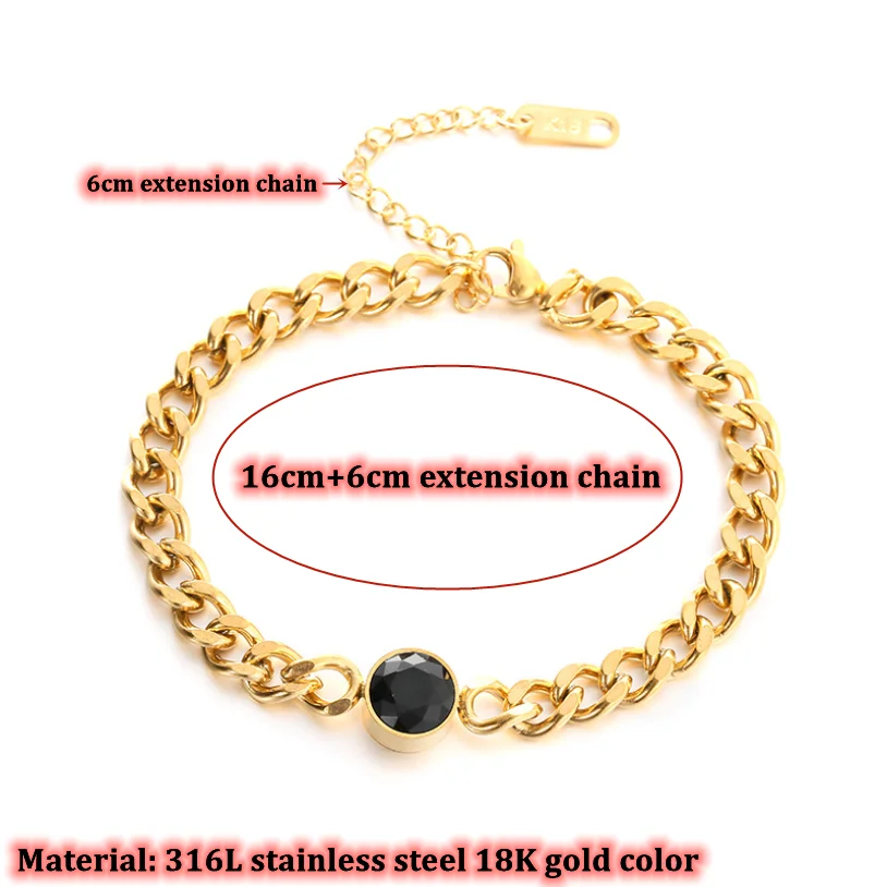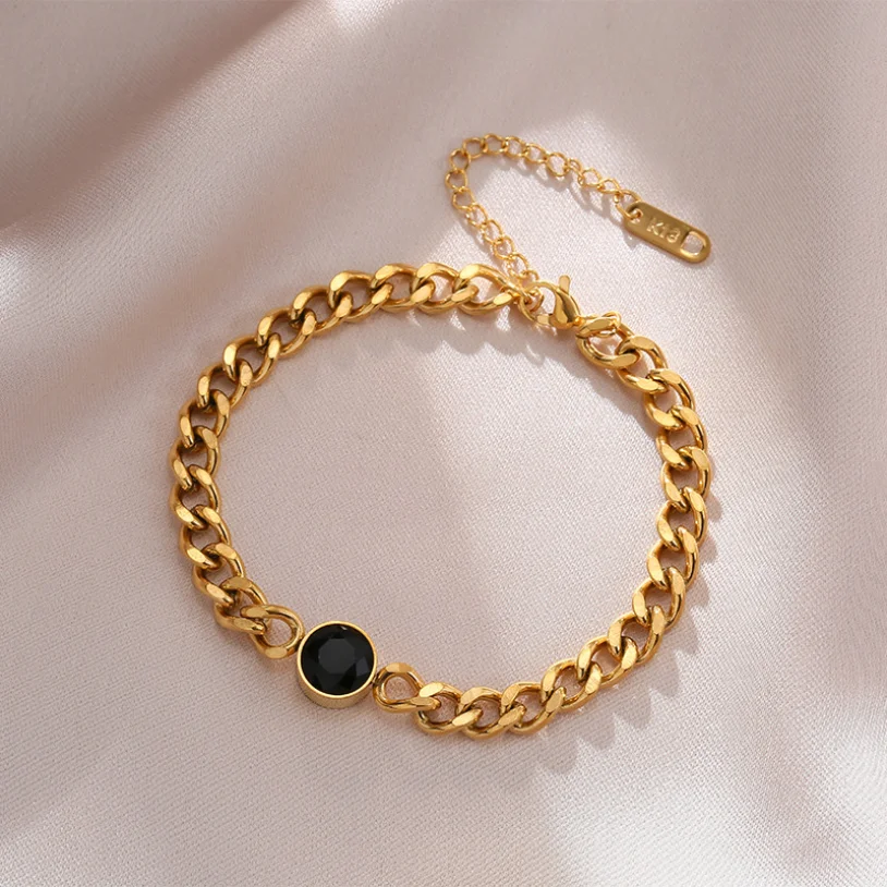Новинка 2021, модные высококлассные ювелирные изделия из нержавеющей стали 316L, минималистские круглые толстые браслеты-цепочки с черным цирконием, браслеты для женщин и мужчин