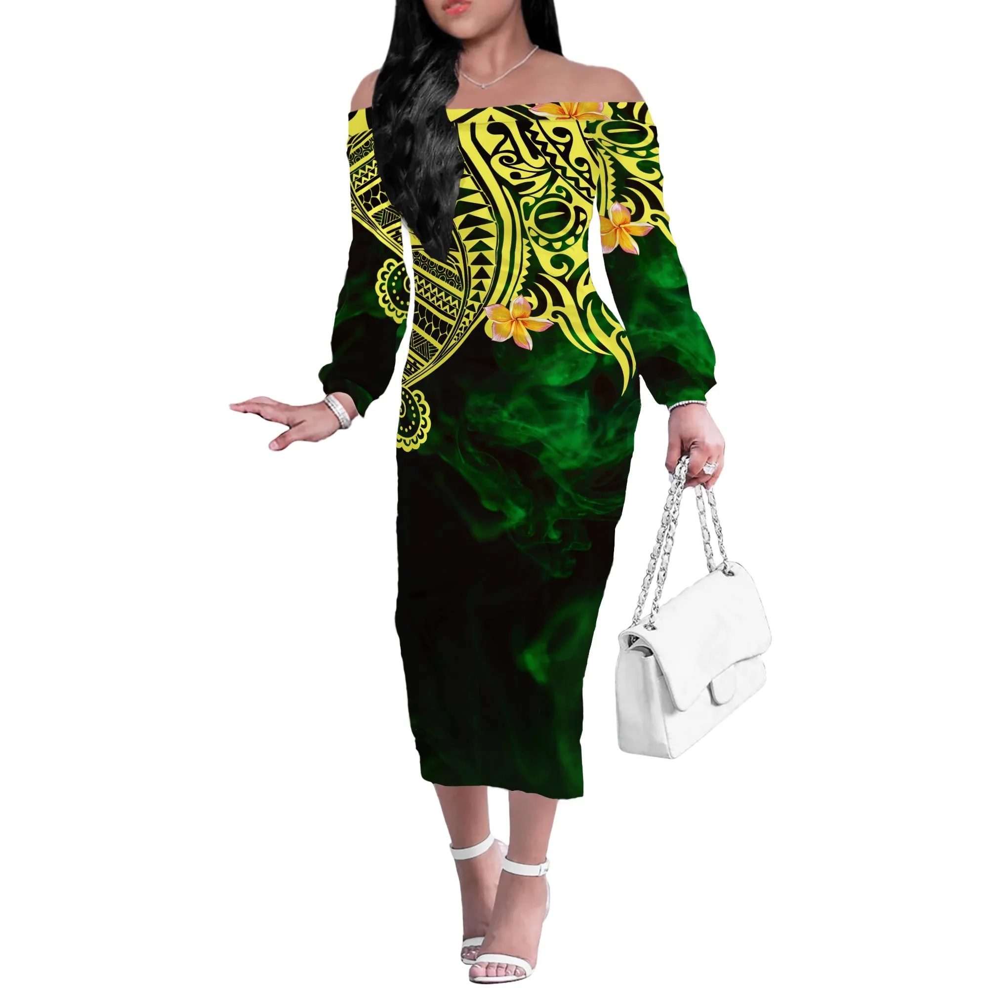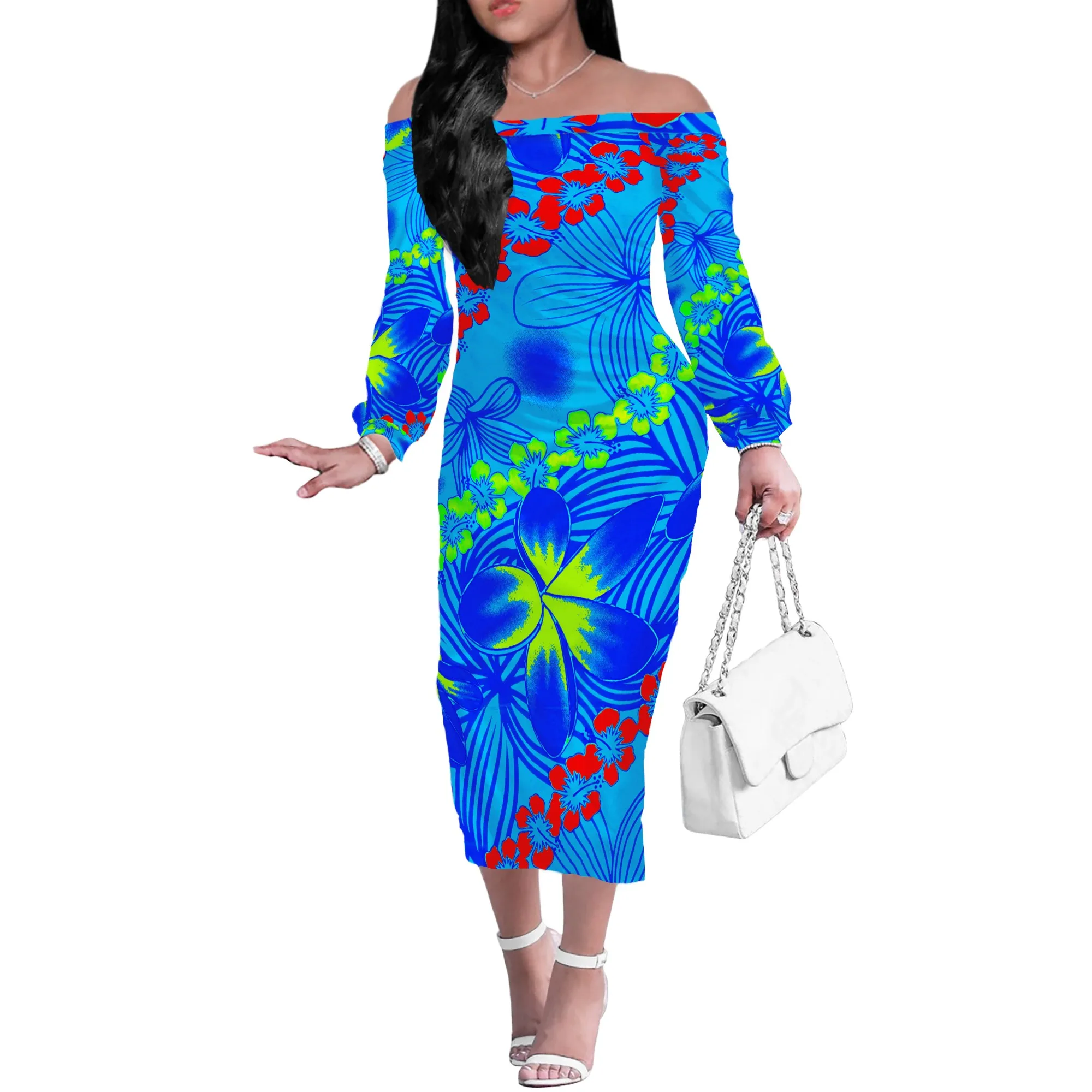 Новое поступление 2021, модное женское элегантное платье-карандаш с открытыми плечами и длинным рукавом, полинезийское племенное женское платье-карандаш для вечерние