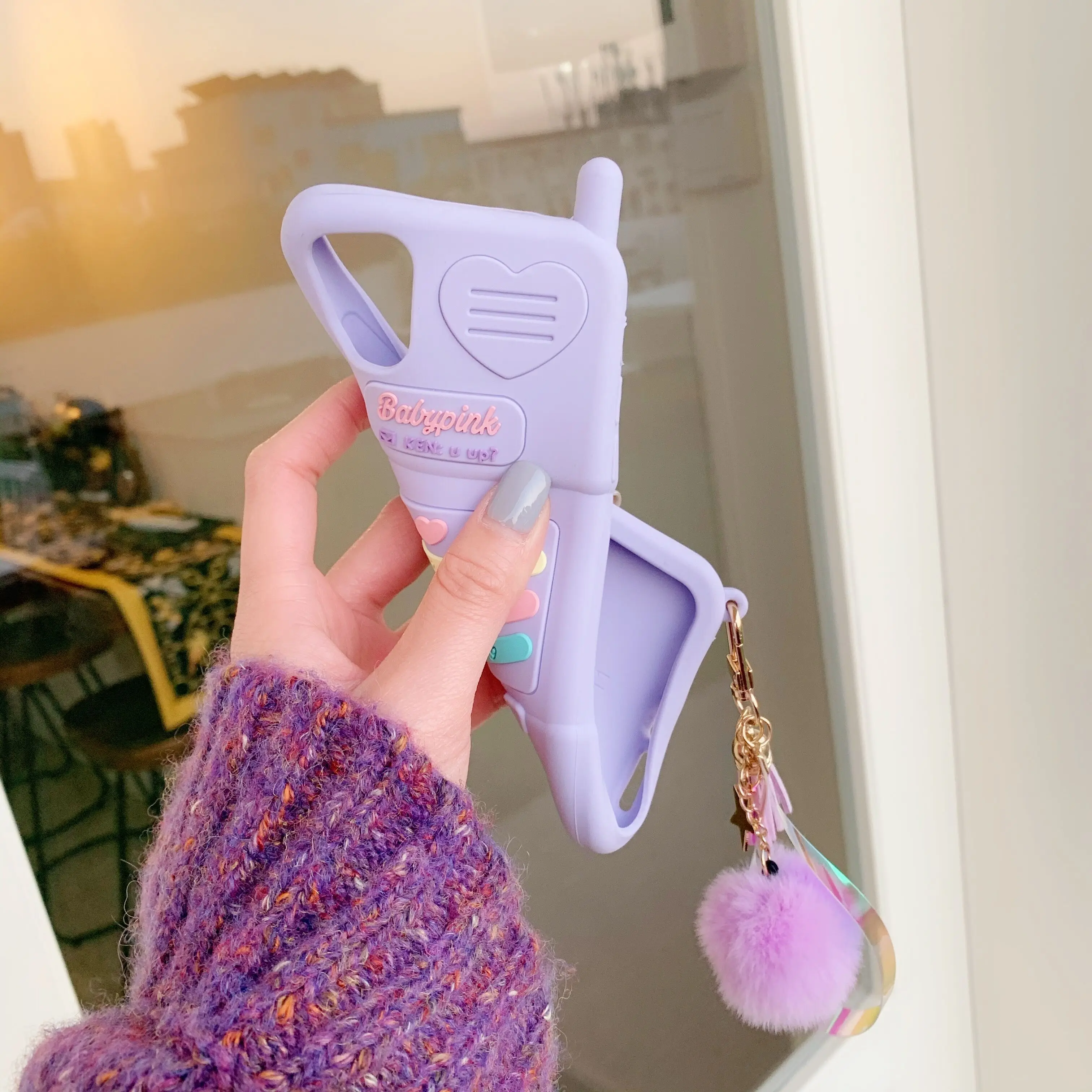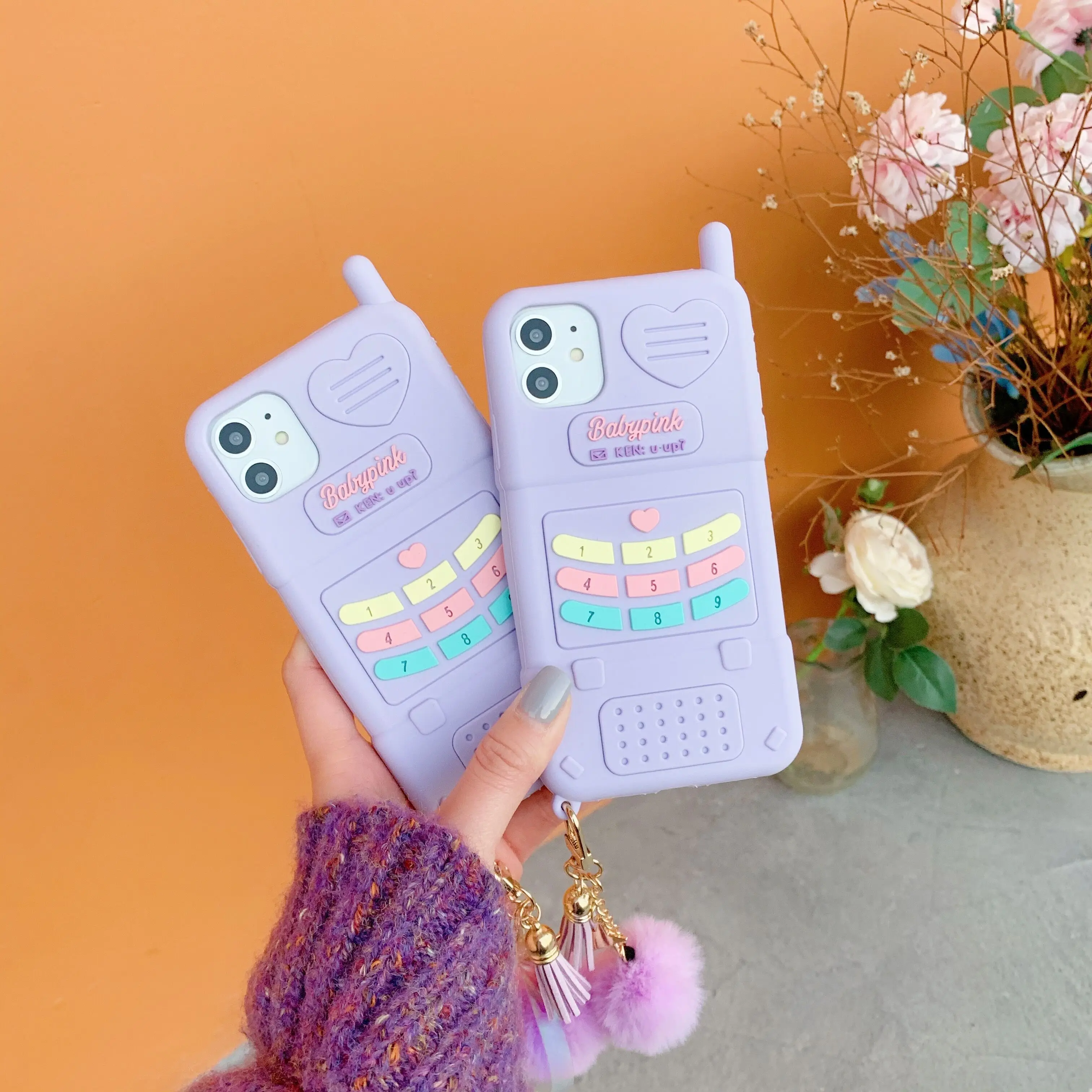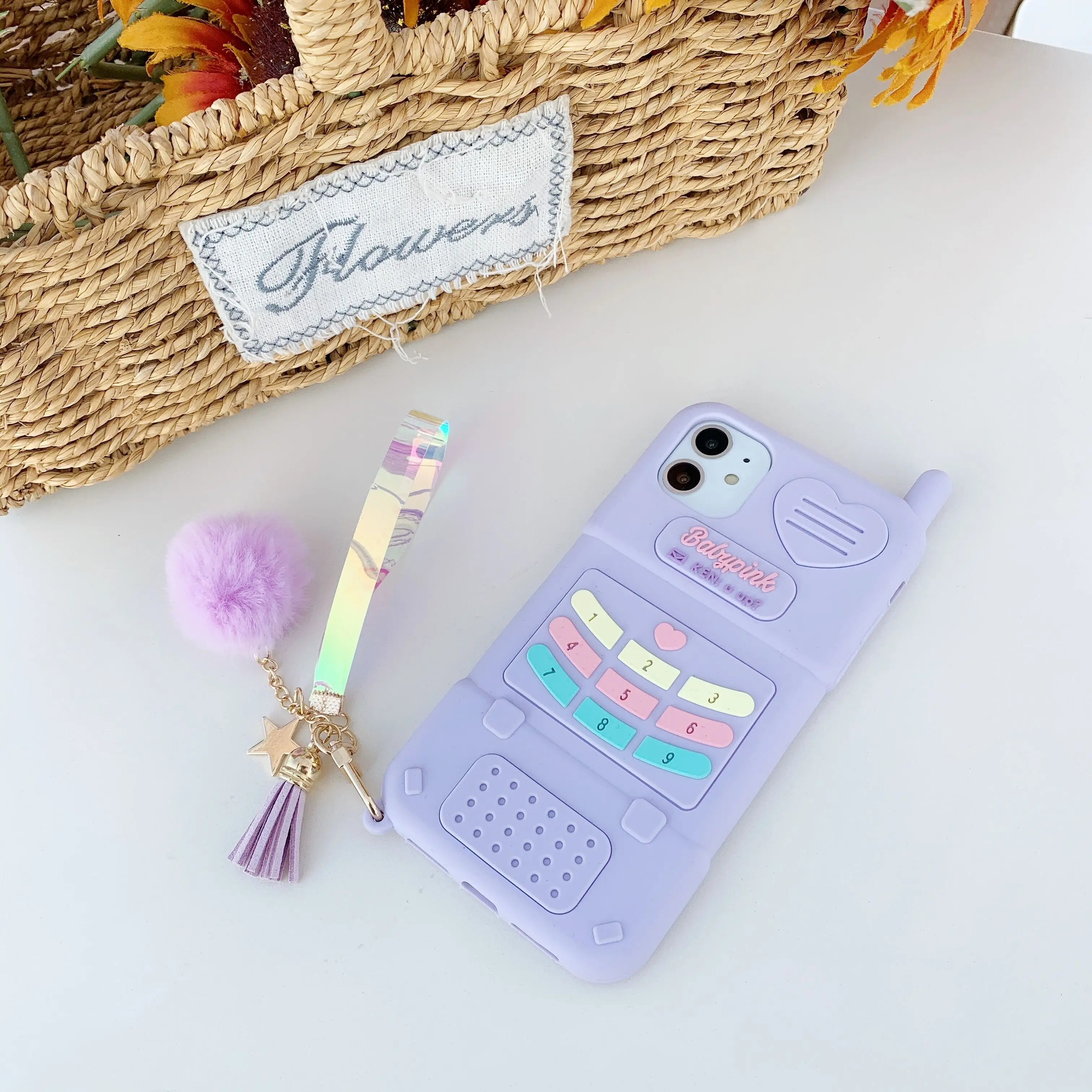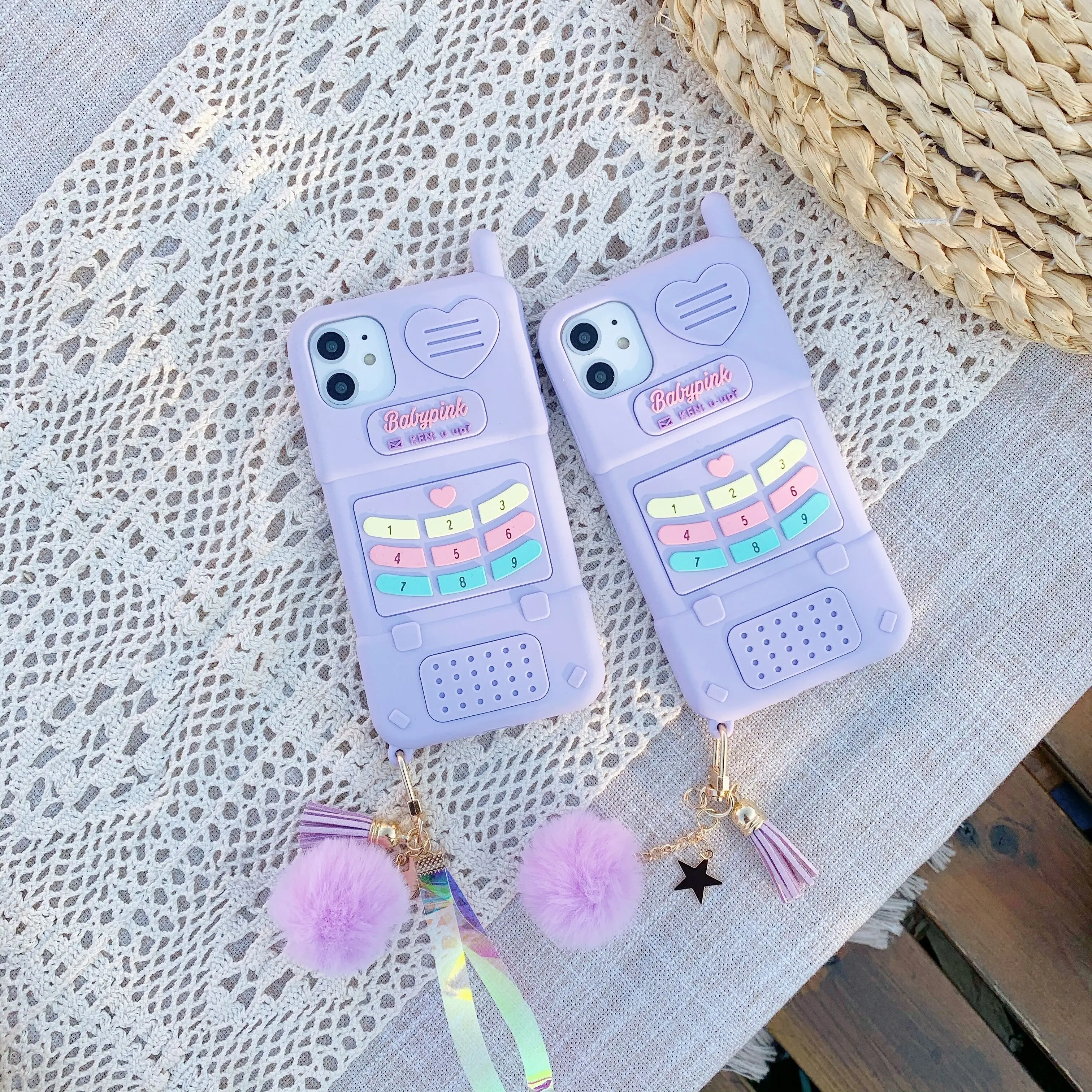 3D Милый Фиолетовый Классический чехол для мобильного телефона для iPhone 13 12 11 Pro XS Max мобильный телефон с меховым шариком брелок мягкий силиконовый чехол