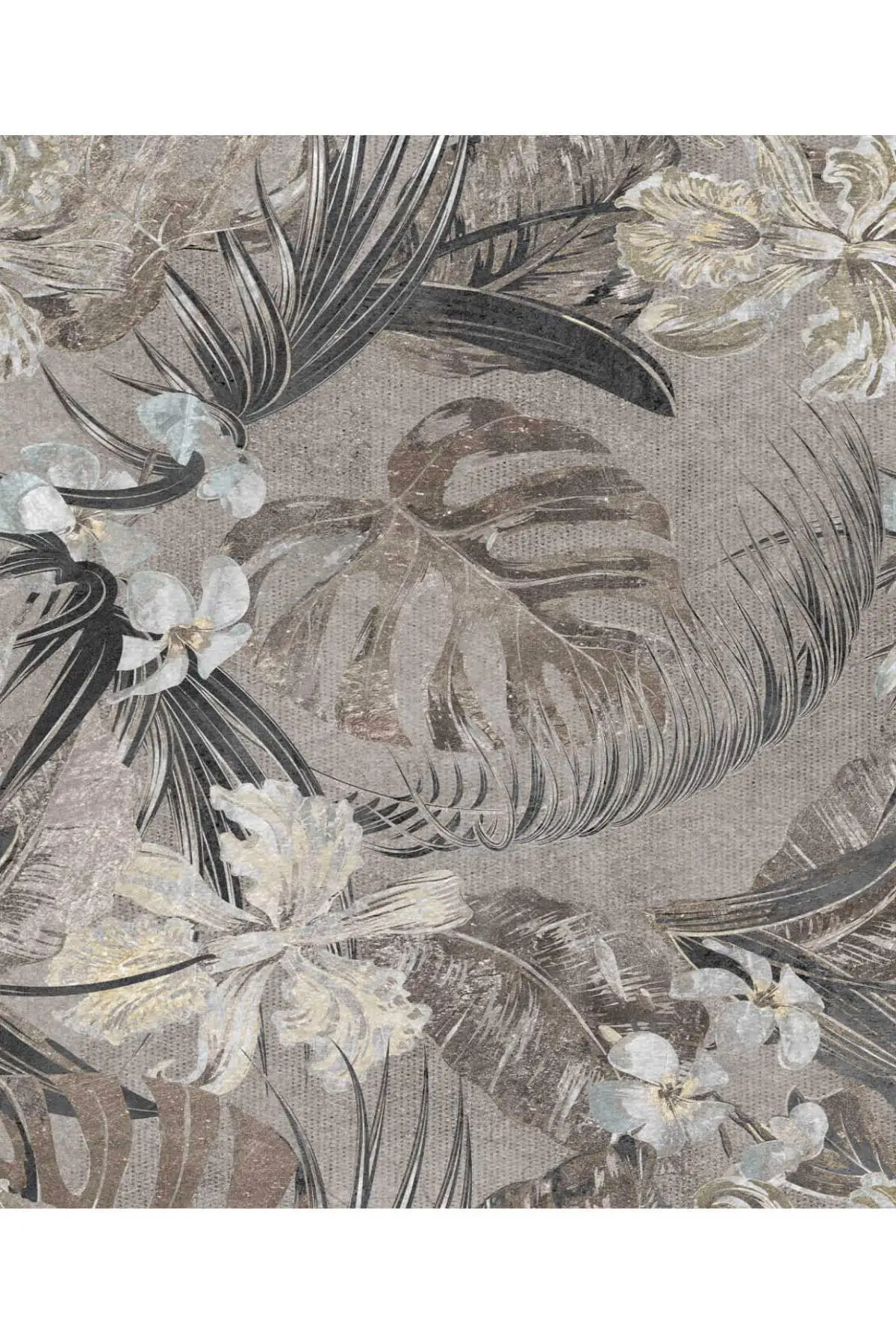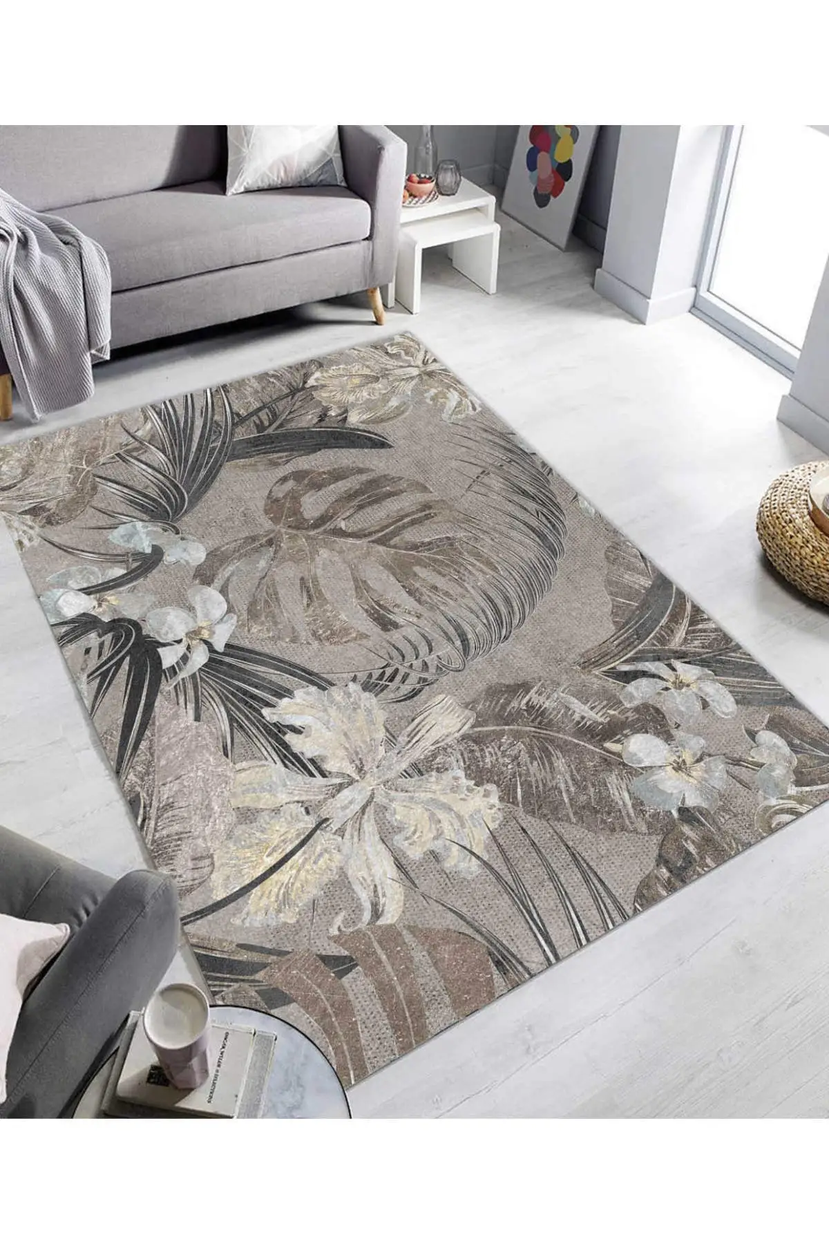 Бежевый нескользящий ковер для гостиной с цифровым принтом и цветочным узором