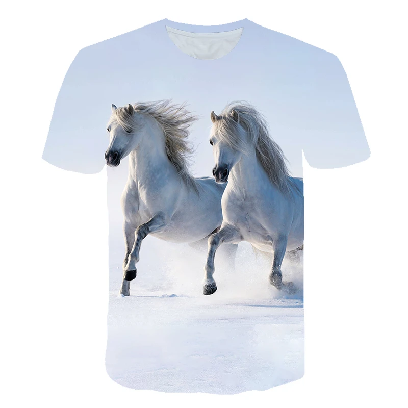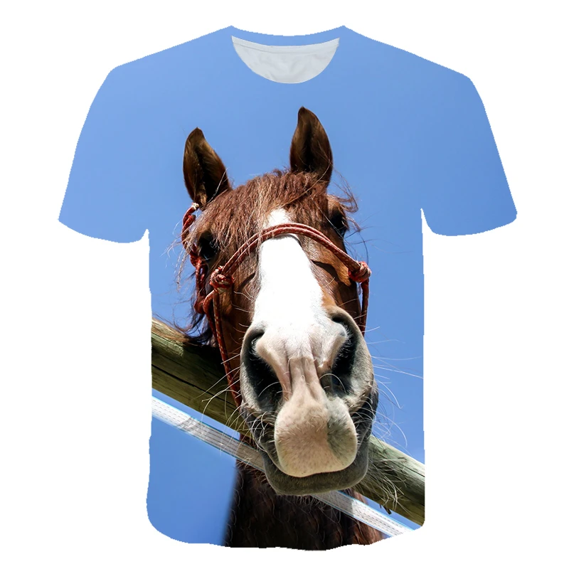 Футболка мужская с круглым вырезом, тенниска с коротким рукавом, повседневная майка с забавным принтом в виде животных, с рисунком бега, лошади, уличная одежда, лето