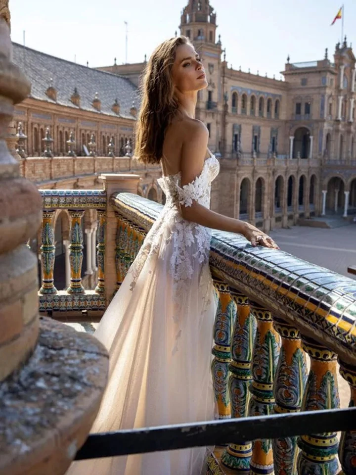 Свадебное платье с открытыми плечами SoDigne Boho Tull, Кружевная а...