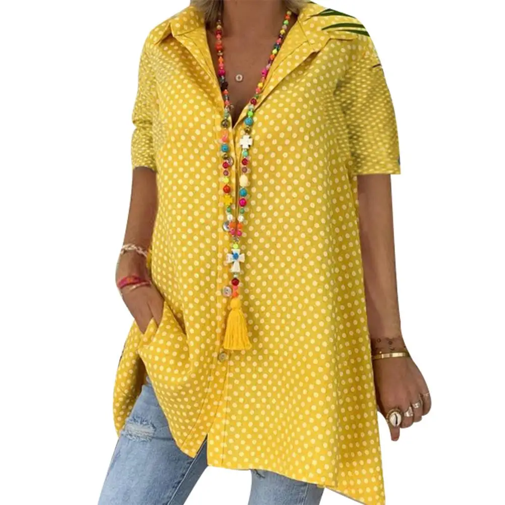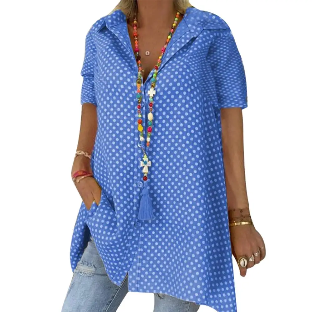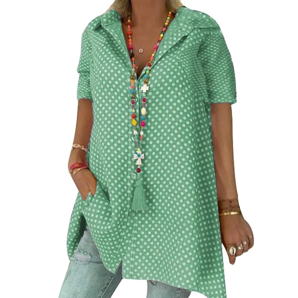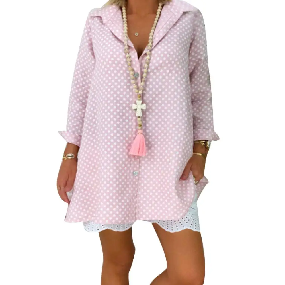 Рубашки для женщин, модная повседневная женская блузка в горошек, с V-образным вырезом и длинным рукавом, туника с лацканами, топы, женская рубашка, блузка 2022