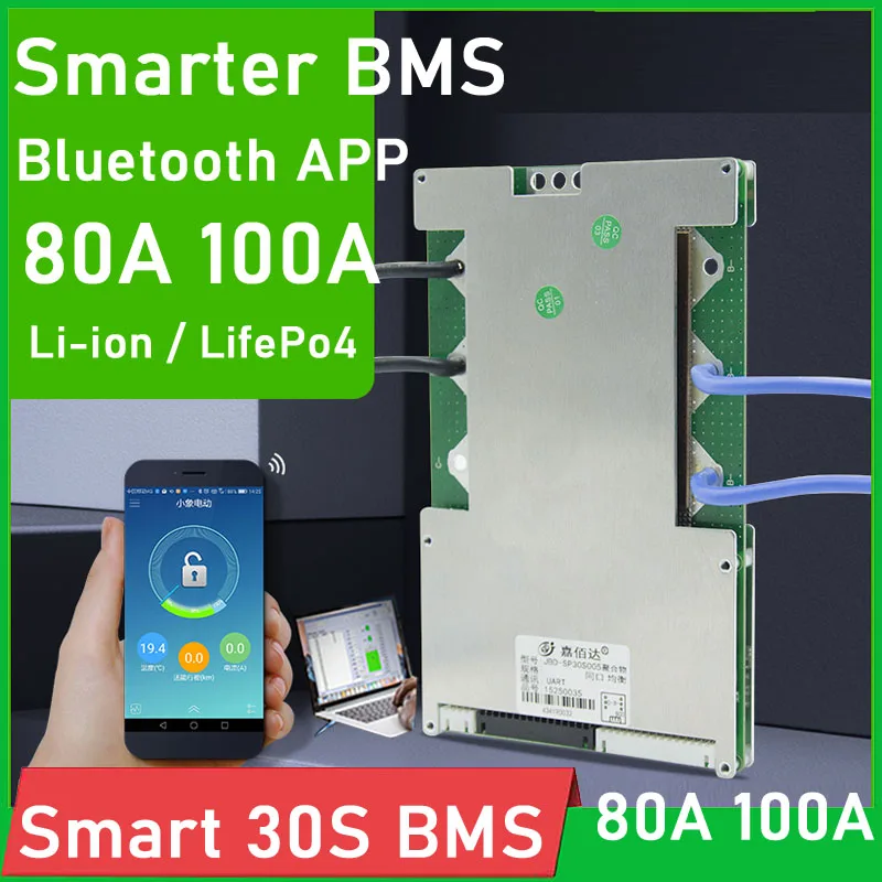 Защитная Плата Smart BMS 30S Li-ion LifePo4 40A 60A 80A 100A для литиевого аккумулятора с балансировкой, Bluetooth, монитором управления через приложение