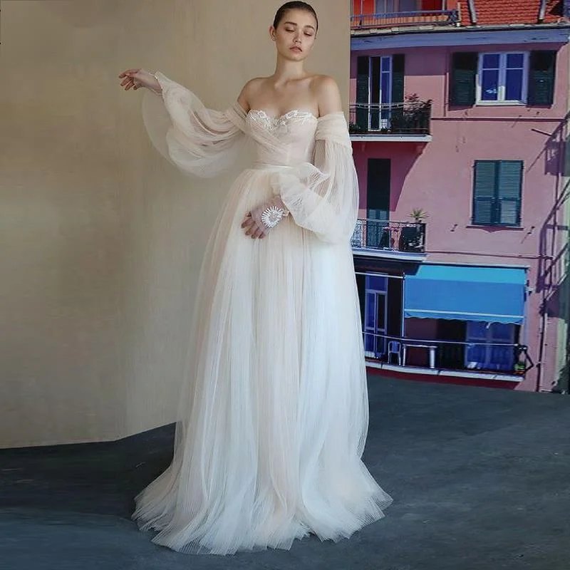 2021 свадебное платье с открытыми плечами, свадебные платья, тренды, Тюлевое платье невесты, кружевное свадебное платье с длинными рукавами, Vestido De Noiva