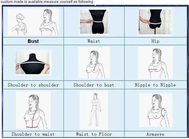 Примечание: Если вы хотите заказать это платье в индивидуальном размере и цвете на заказ, вы можете выбрать случайный размер и цвет при размещении заказа, а затем оставить нам сообщение о вашем пользовательском размере и цвете. Таким образом, мы можем увидеть цвет и размеры, которые вы хотите, когда мы получим заказ. Если вы хотите сделать платье на заказ, пожалуйста, пришлите нам список размеров, как указано ниже: 1. Обхват груди = _ см 2. Талия = _ см 3. Бедра = _ см 4. От талии до пола с обувью = _ см 5. От плеча до пола с обувью = _ см 6. Высота = _ см (от верхней части головы до пола с обувью) Цвет платья = _ (любой цвет выбирается из нашей таблицы цветов или цвета изображения)