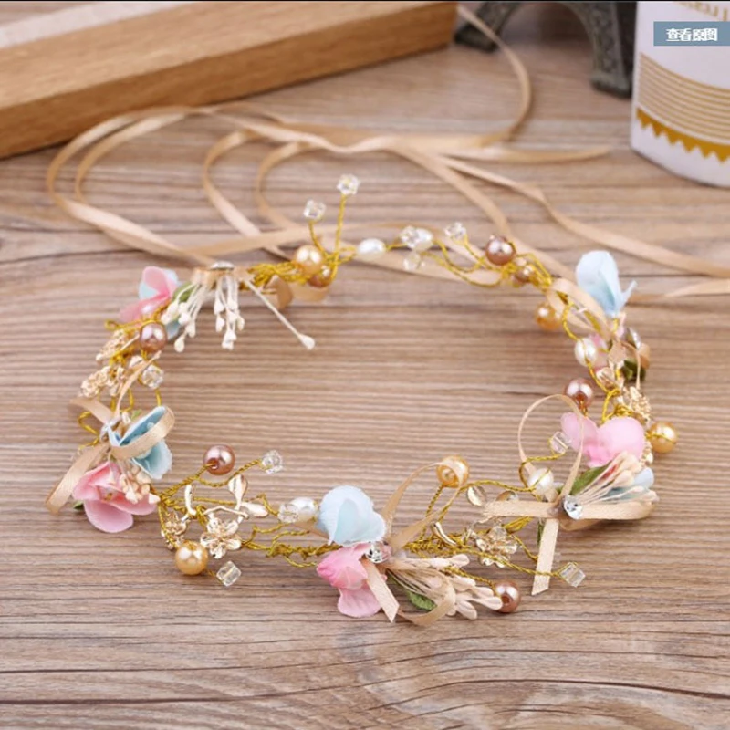 Повязка для волос с лентой женская, модный венок с цветами, Свадебн...