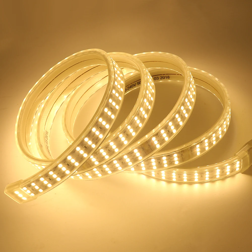 276 светодиодный sМ 2835 светодиодный полосы светильник 220 В переменного тока на открытом воздухе Водонепроницаемый светодиодный лента стандарта ЕС, США, Великобритании гибкий светодиодный светильник s полосы домашний декор белыйтеплый белый