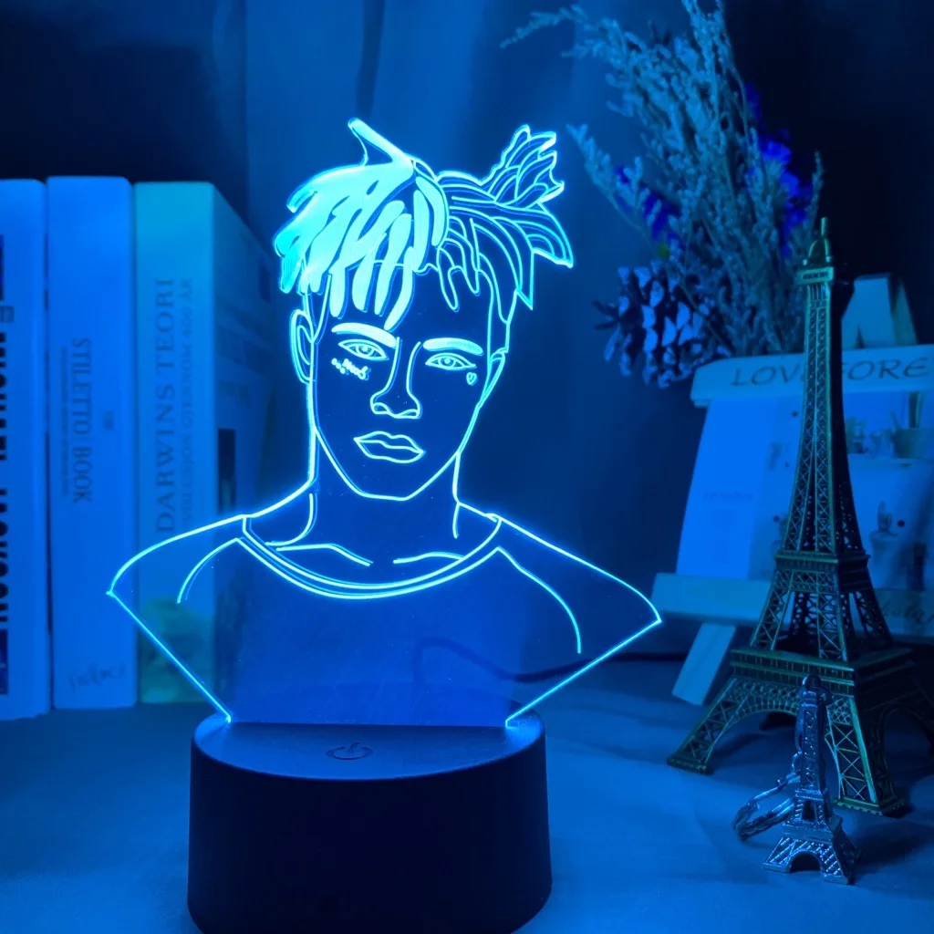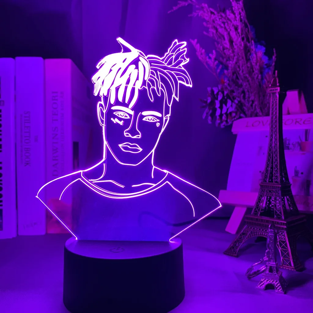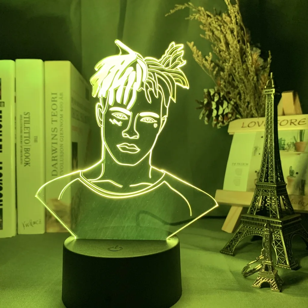 3D Иллюзия лампы в американском стиле, реперские кепки Xxxtentacion рисунок светодиодный ночной Светильник охлажденный ветилятор подарок номер Декор Светильник Спальня стол 3D лампа