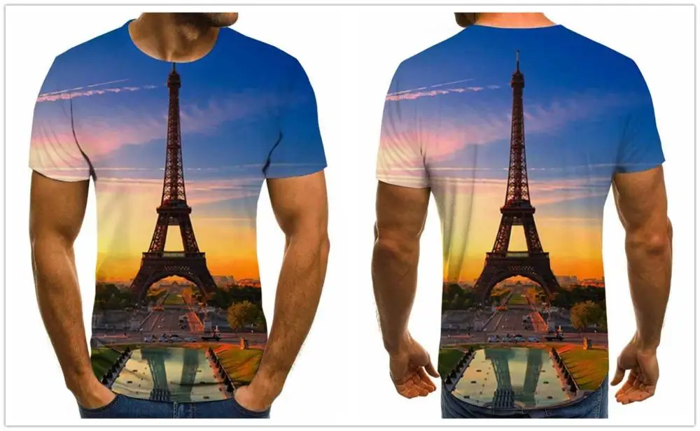 Мужскаяженская футболка с 3D-принтом восход и закат, летняя футболк...