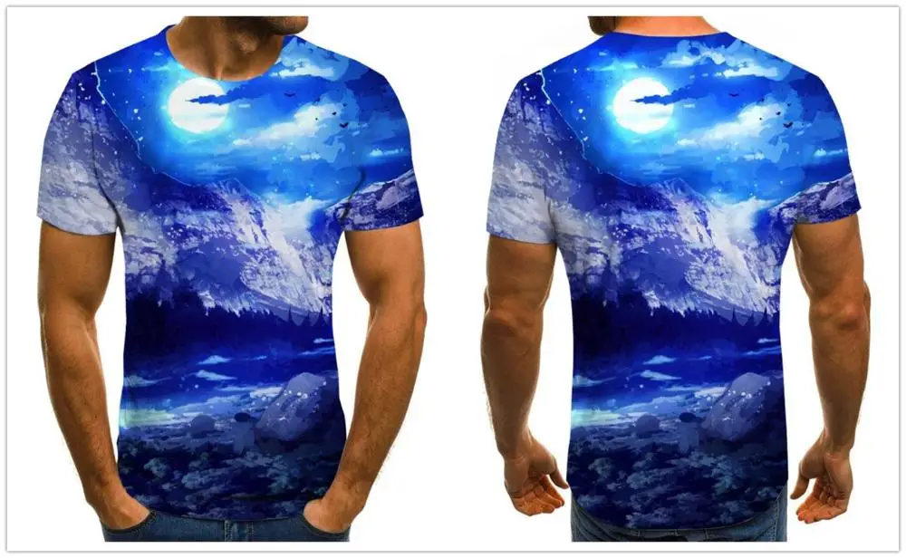 Футболка мужская, летняя, повседневная, с 3D-принтом звездного неба, 2021, уличная одежда, размер Забавные топы, XS-6XL