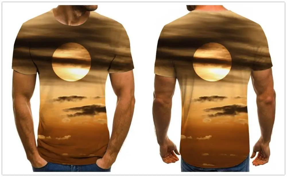 Футболка Мужскаяженская с 3D-принтом восхода и заката, топ с круглы...