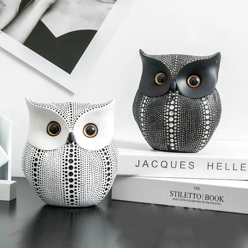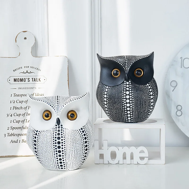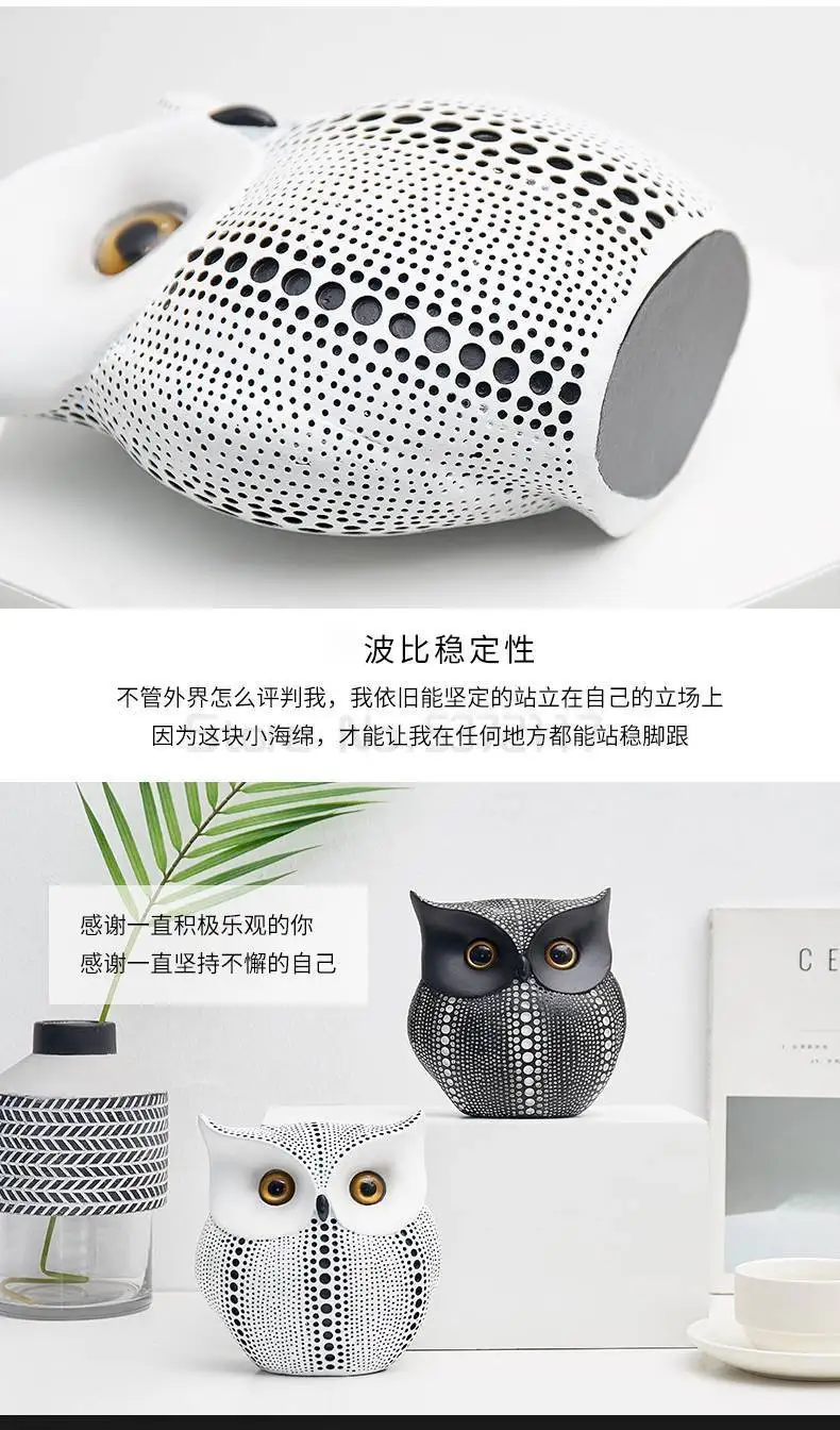 Черно-белая статуя совы, креативное украшение, полимерная скульптура животного, модель, украшение для дома в гостиной, имитация орнамента