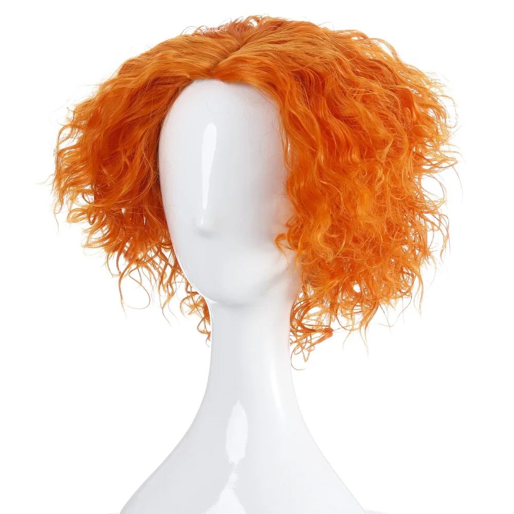 Парик для мужчин синтетический короткий Боб кудрявый оранжевый Сумасшедший Хэллоуин парики для косплея вечеринки клоун сумасшедший