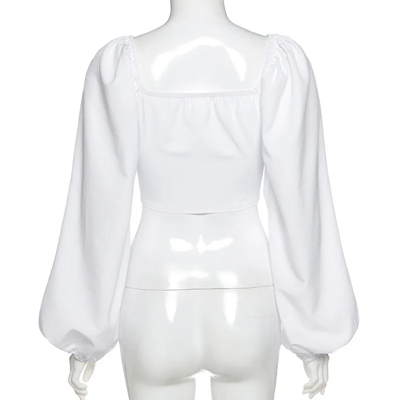 Женские футболки 2021, топ, рубашки с рукавами-фонариками, летний пикантный бандажный кроп-топ, модный праздничный Приталенный топ, футболки со шнуровкой и квадратным вырезом
