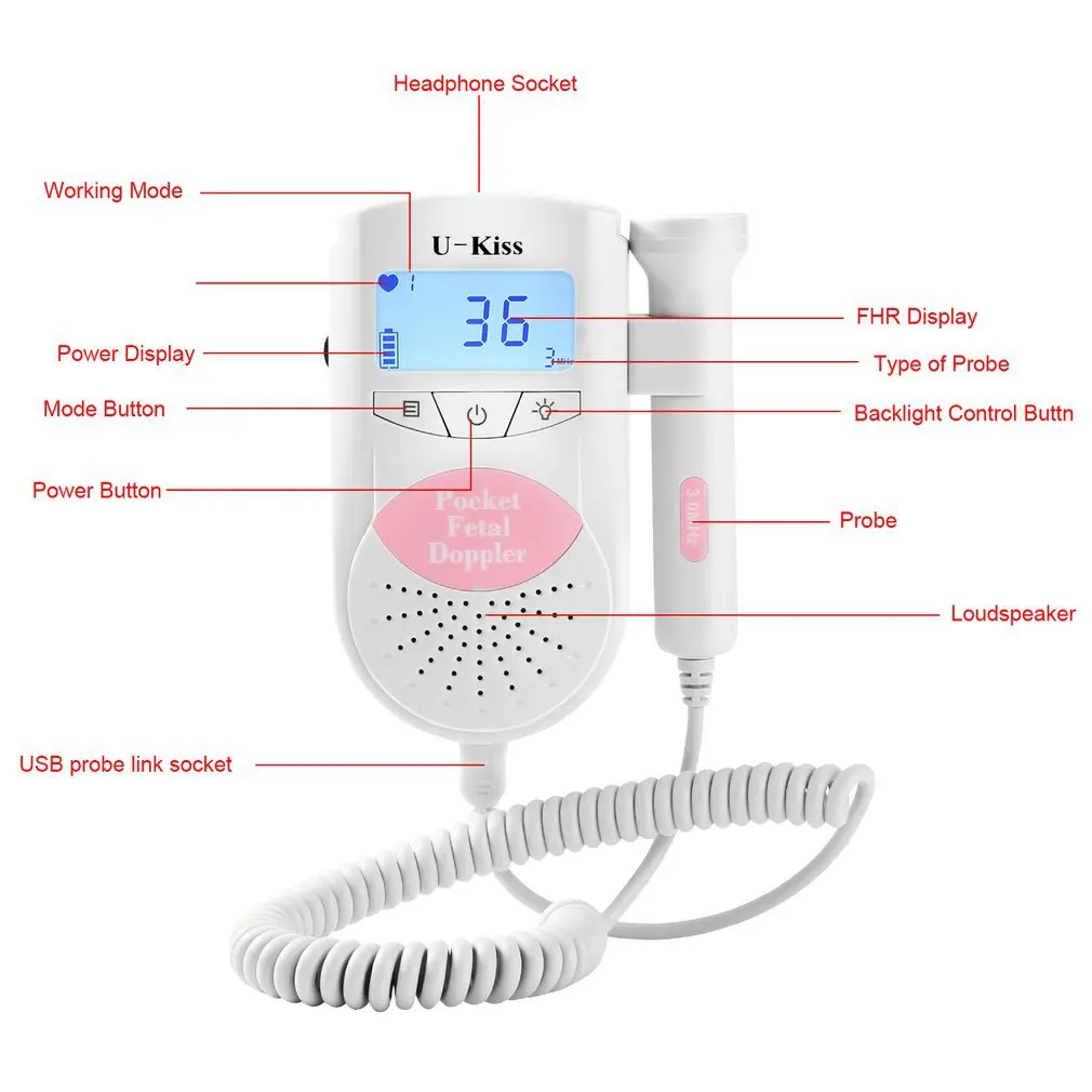 Допплер, монитор сердечного ритма плода, ЖК-дисплей, без излучения, детский детектор сердечного ритма