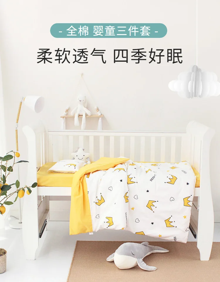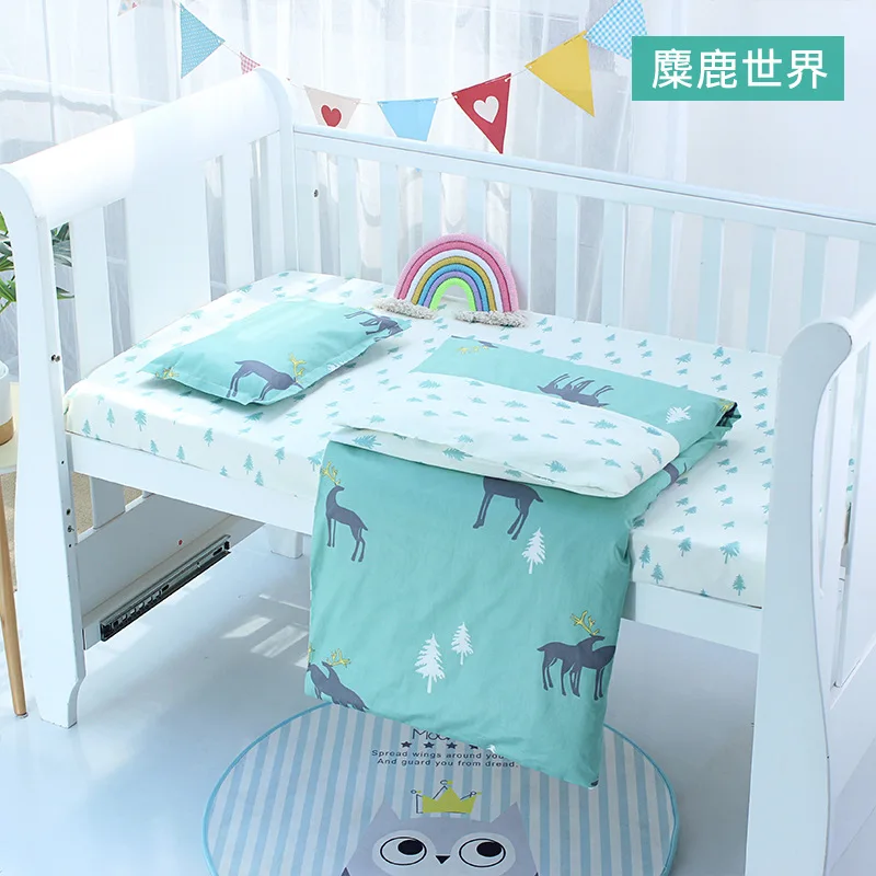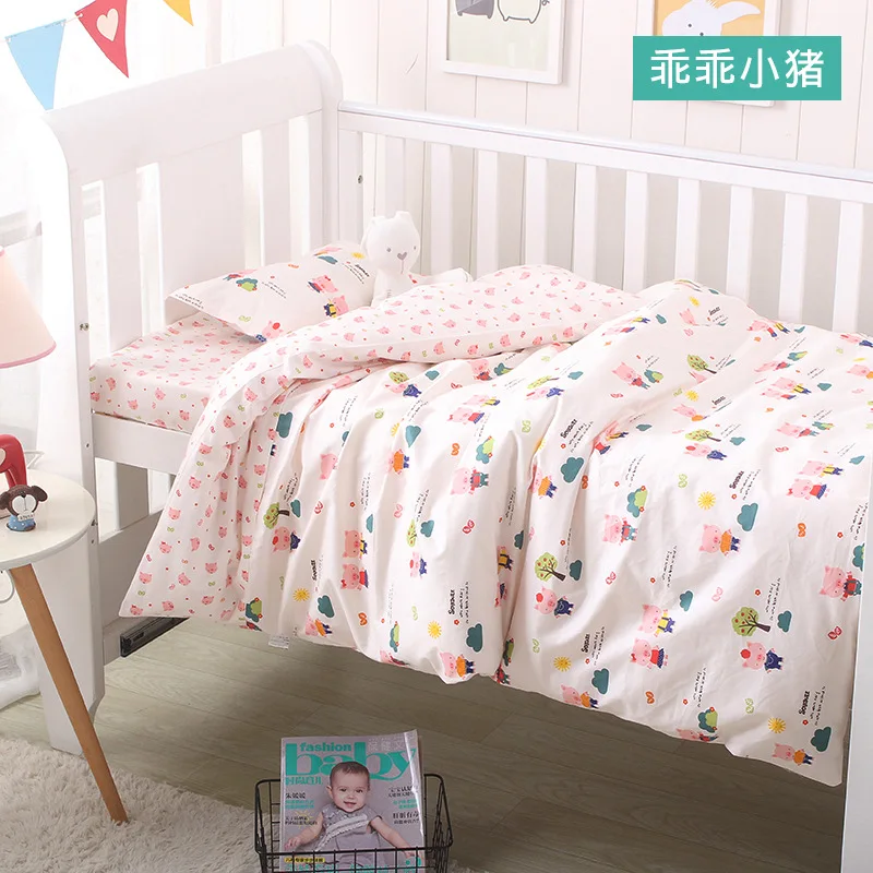 Комплект из 3 предметов для новорожденных, хлопковый постельные принадлежности для колыбели с мультяшным принтом, постельное белье для спальни, пододеяльник, простыня, подушка
