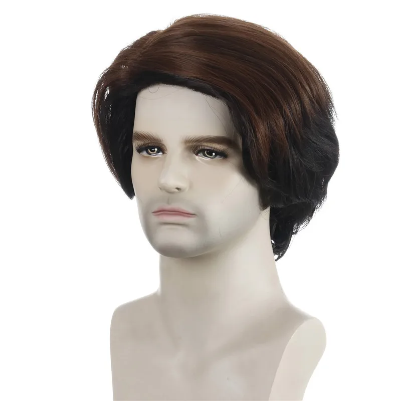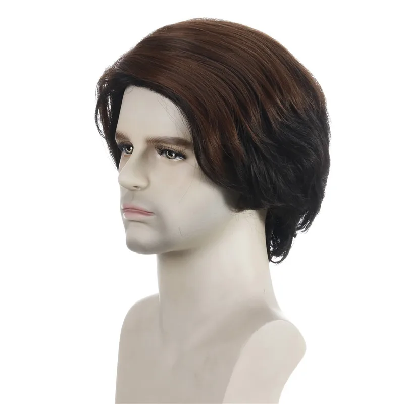Мужской короткий черный коричневый смешанный парик синтетический парик с боковой частью челки флисовые реалистичные парики