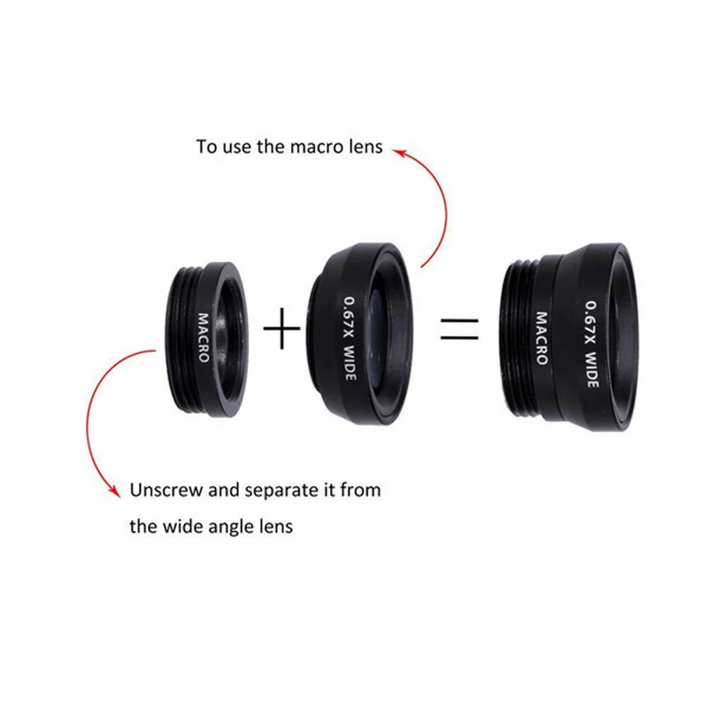 3-в-одном универсальное Крепление объектива: широкоугольный, макро-объектив, рыбий глаз