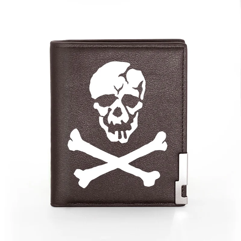 Высококачественный роскошный кожаный кошелек в стиле стимпанк с белым принтом черепа, держатель для кредитных карт, короткий тонкий мужской кошелек для мужчин