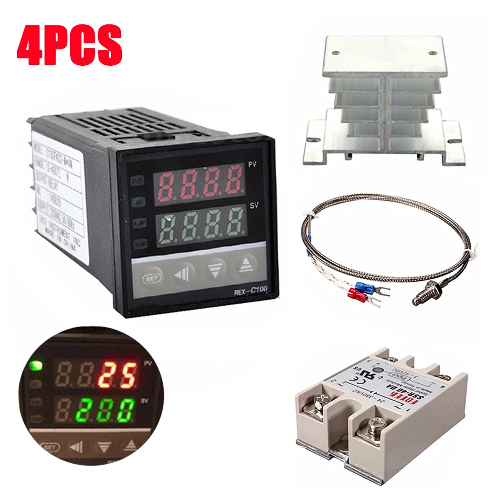 250V 3A цифровой REX-C100 PID Температура контроллер Панель SSR-40A теплоотвод комплект
