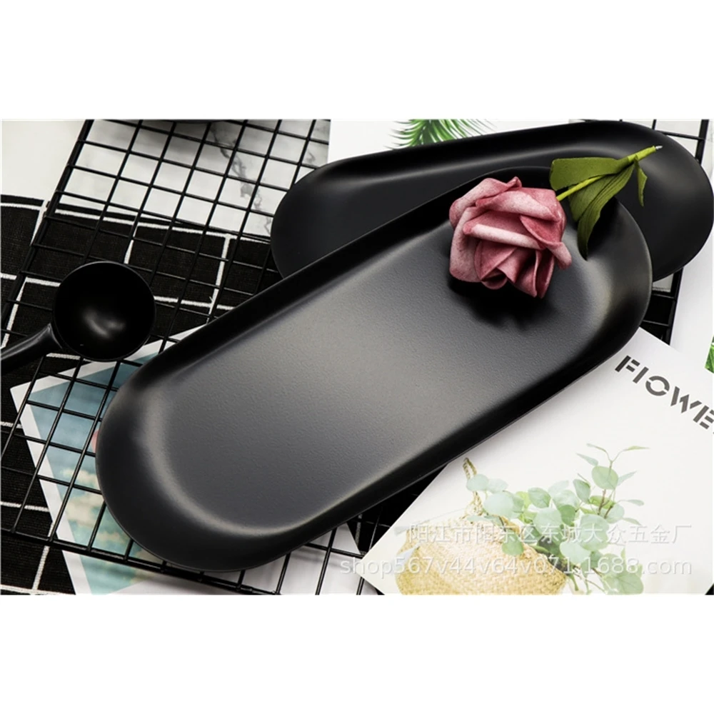 Матовая обеденная тарелка из нержавеющей стали, черная десертная тарелка, фруктовый торт, поднос для снэков, кухонная тарелка, Западный стейк, кухонная тарелка L1