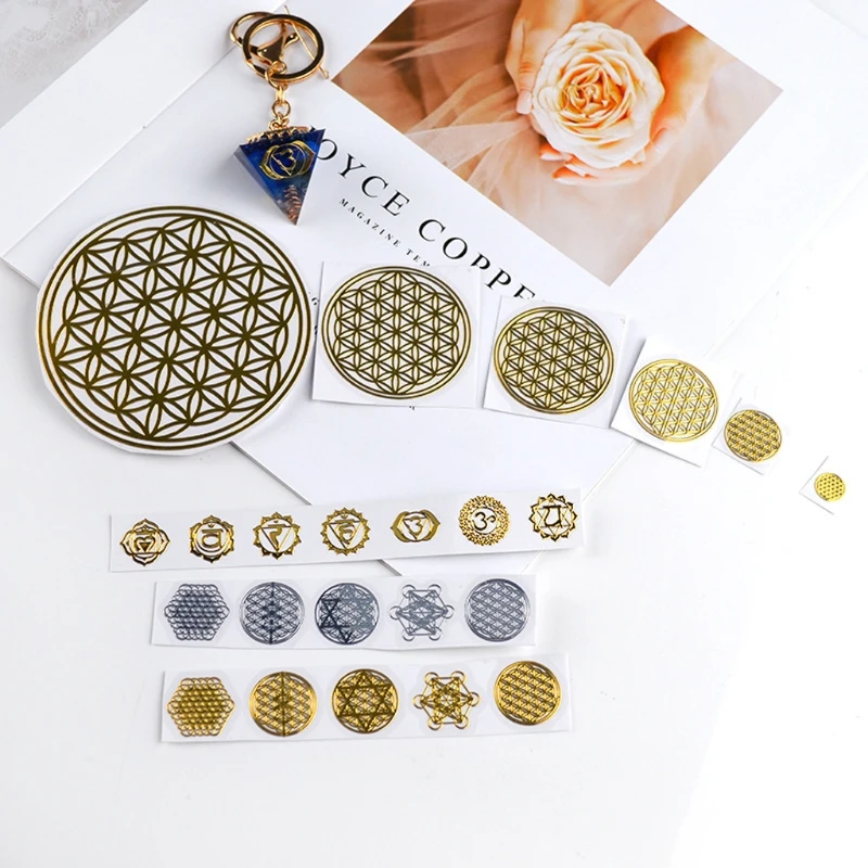 7 Чакр геометрические медные энергетические башни органитовые наклейки цветок жизнь дерево Пирамида эпоксидная смола материал для изготовления ювелирных изделий