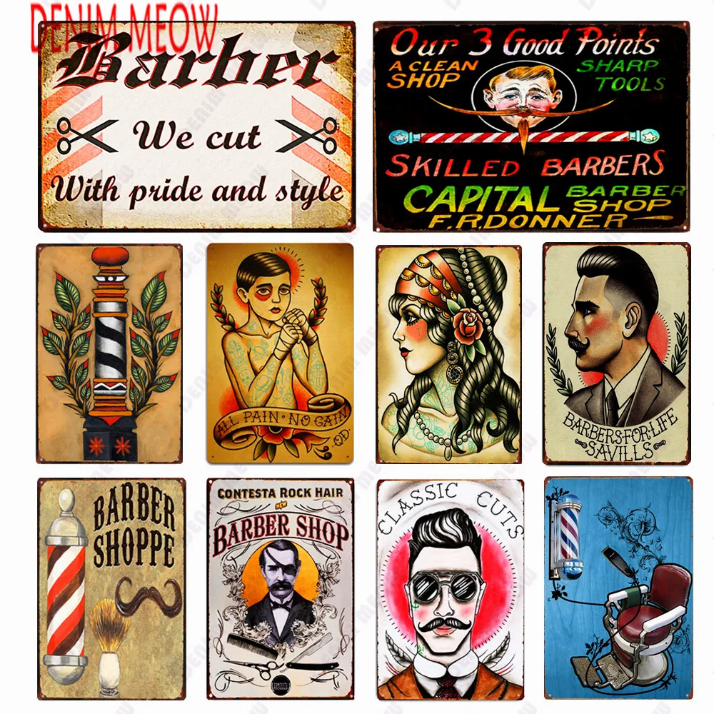 Винтажный парикмахерский металлический декор бритье и стрижка украшение для туалета классический металлический оловянный знак настенный художественный магазин барные таблички WY151