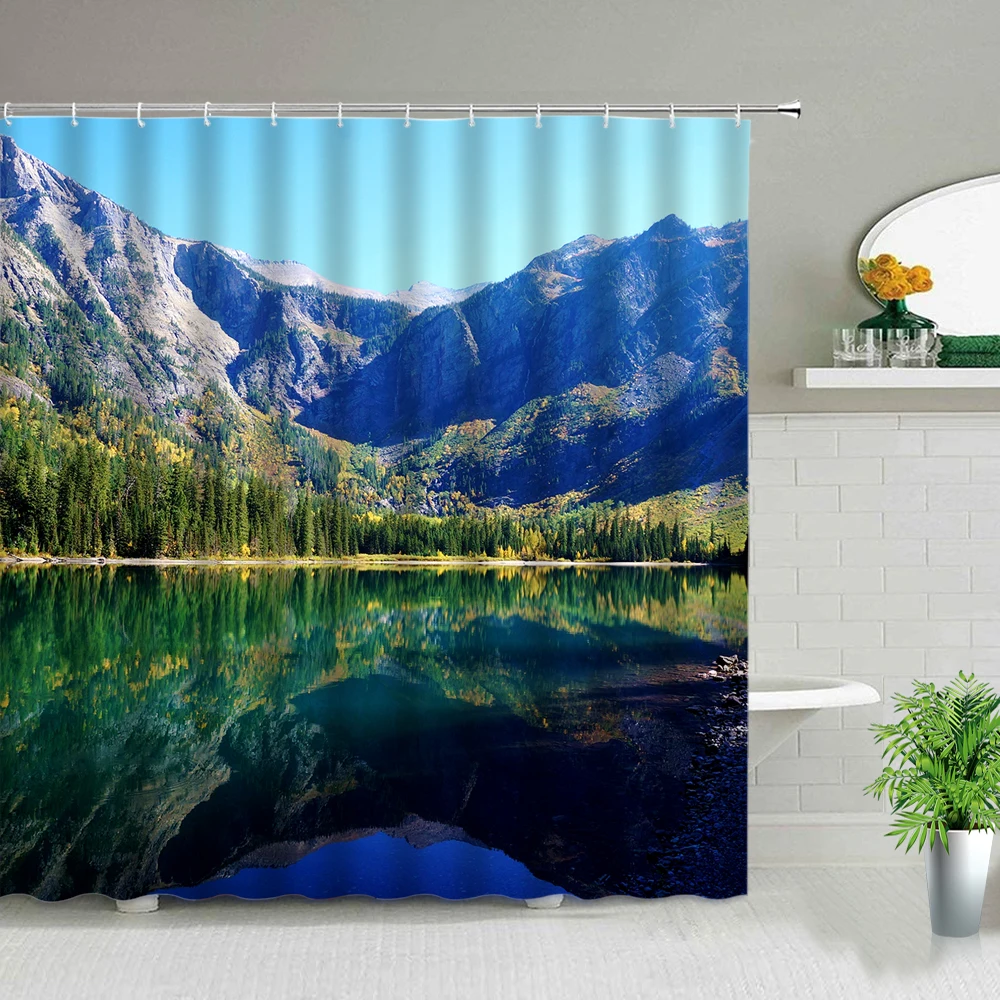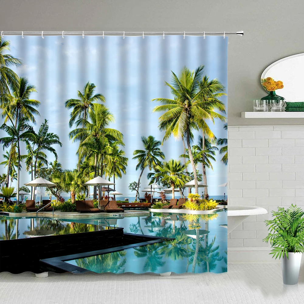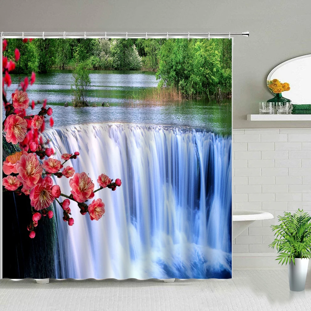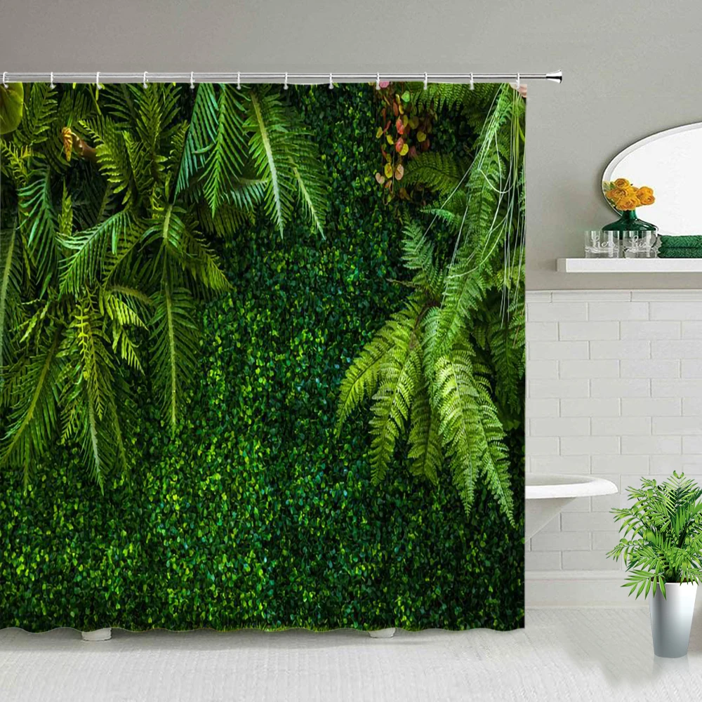 Тропический тропический лес, зеленые листья, занавеска для душа, цветок, лес, водопад, пейзаж, садовый фон, декоративная ткань для стены