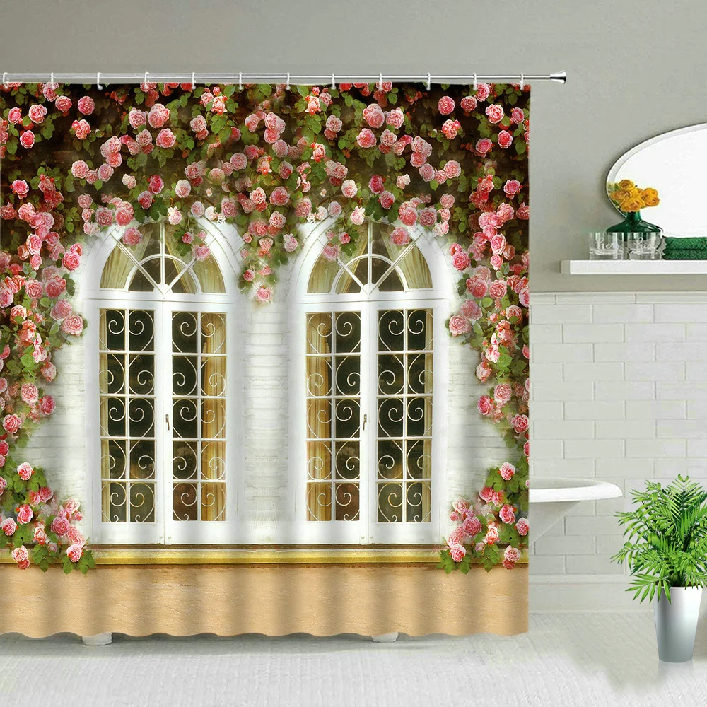 Занавеска для душа с деревянными дверями и крючками, винтажная Водо...
