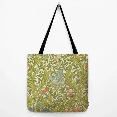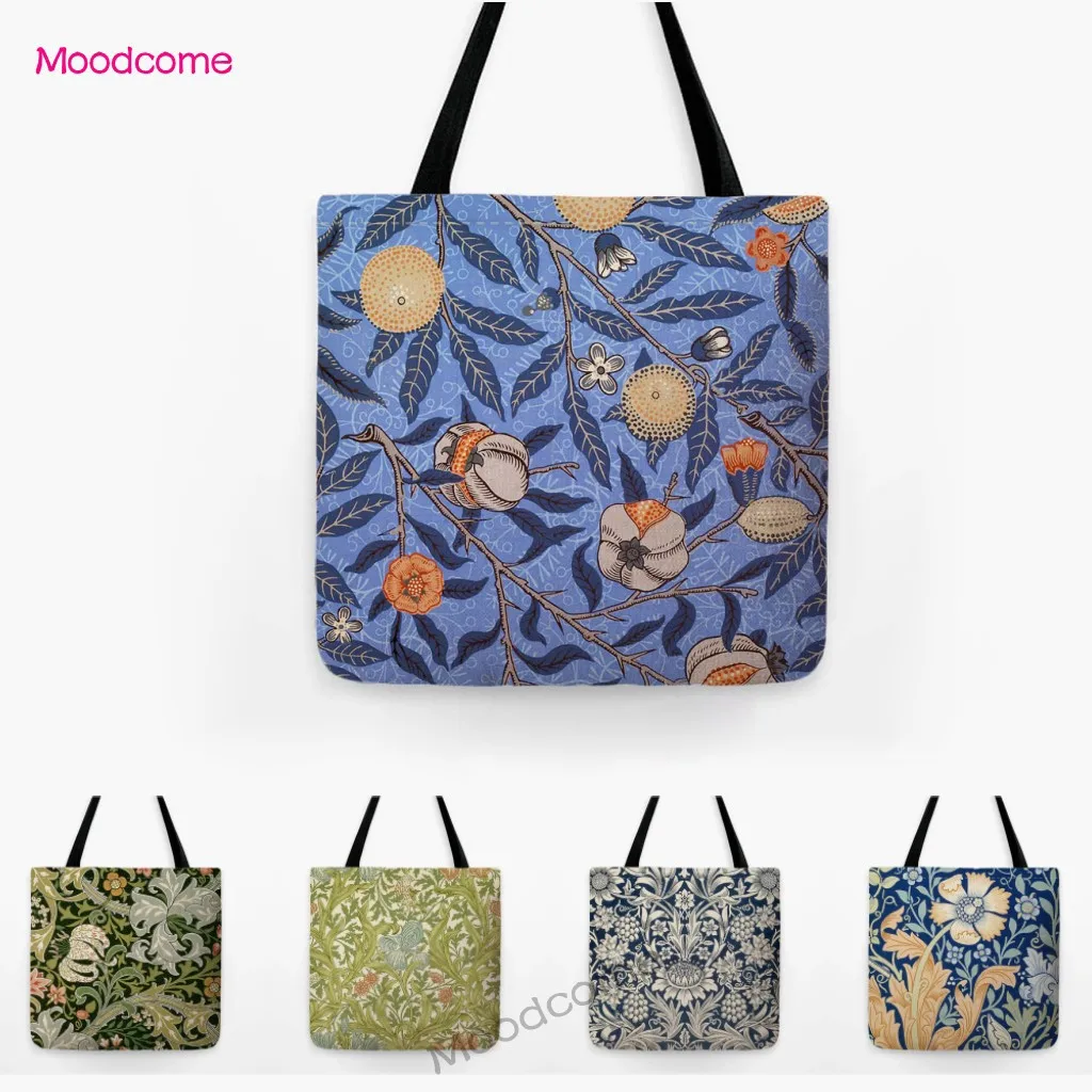 Модная сумка через плечо, William Morris листьев растений цветочный узор Водонепроницаемый холщовая хозяйственная сумка постельное белье с цветами современного искусства Сумка-тоут