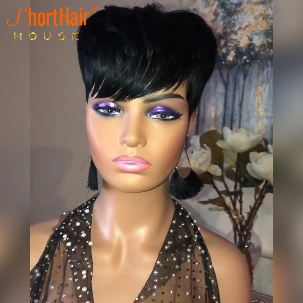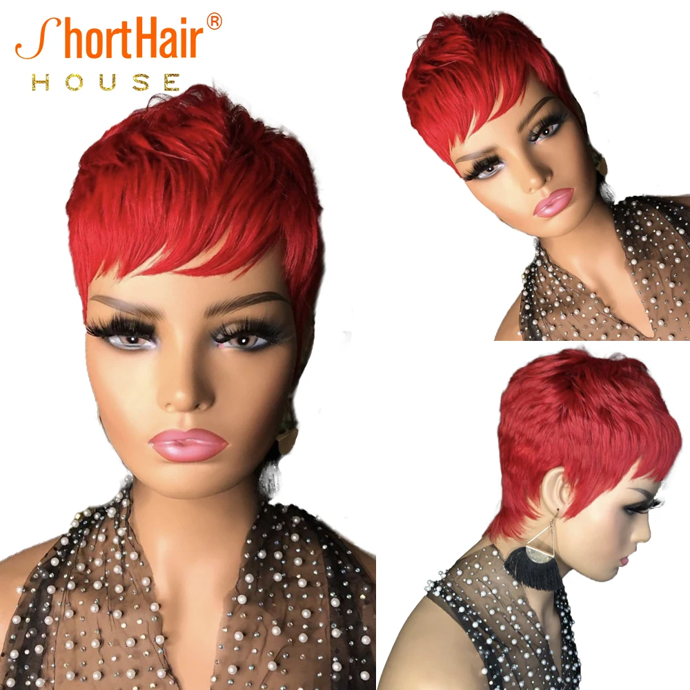 Красные человеческие волосы, короткие волосы с челкой, парики с челкой, бразильские прямые, без кружева, с челкой для чернокожих женщин, полностью машинный парик