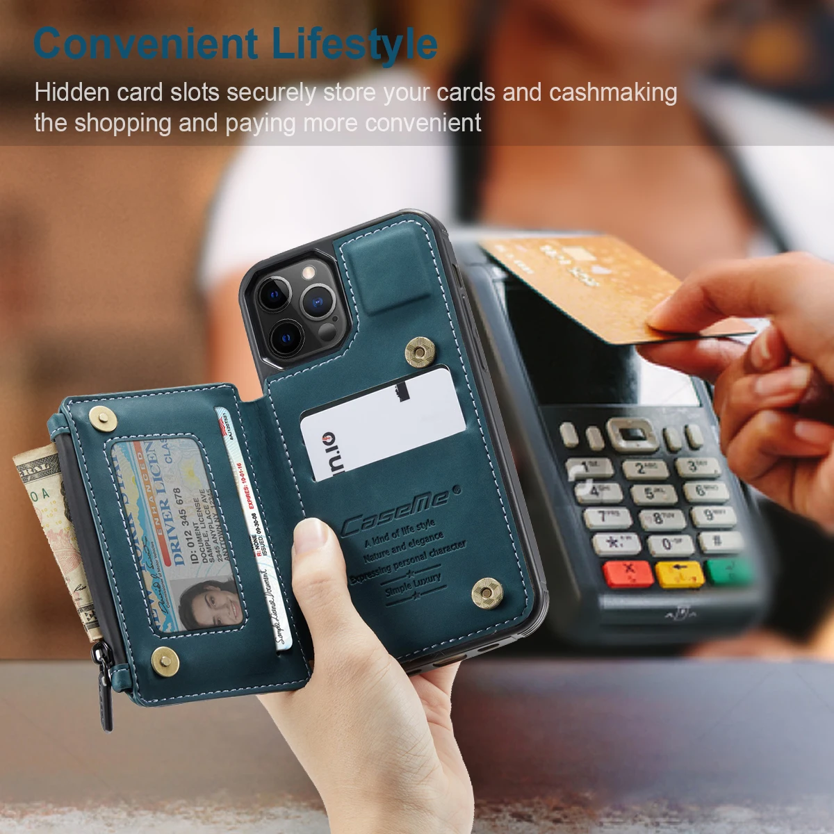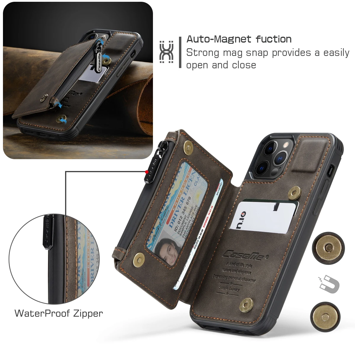 Многофункциональный чехол-кошелек на молнии для iPhone 12 11 Pro Ma...