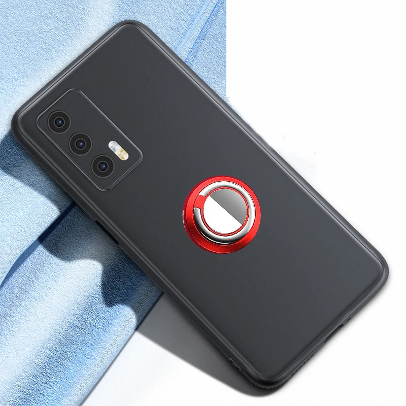 Чехол с кольцом для VIVO X70 V2133A, Черный Мягкий противоударный ч...