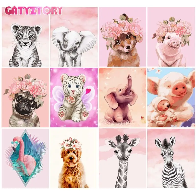 Набор для рисования животных GATYZTORY, разноцветный декоративный цветок в рамке, набор для рисования по номерам