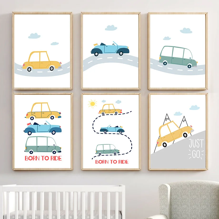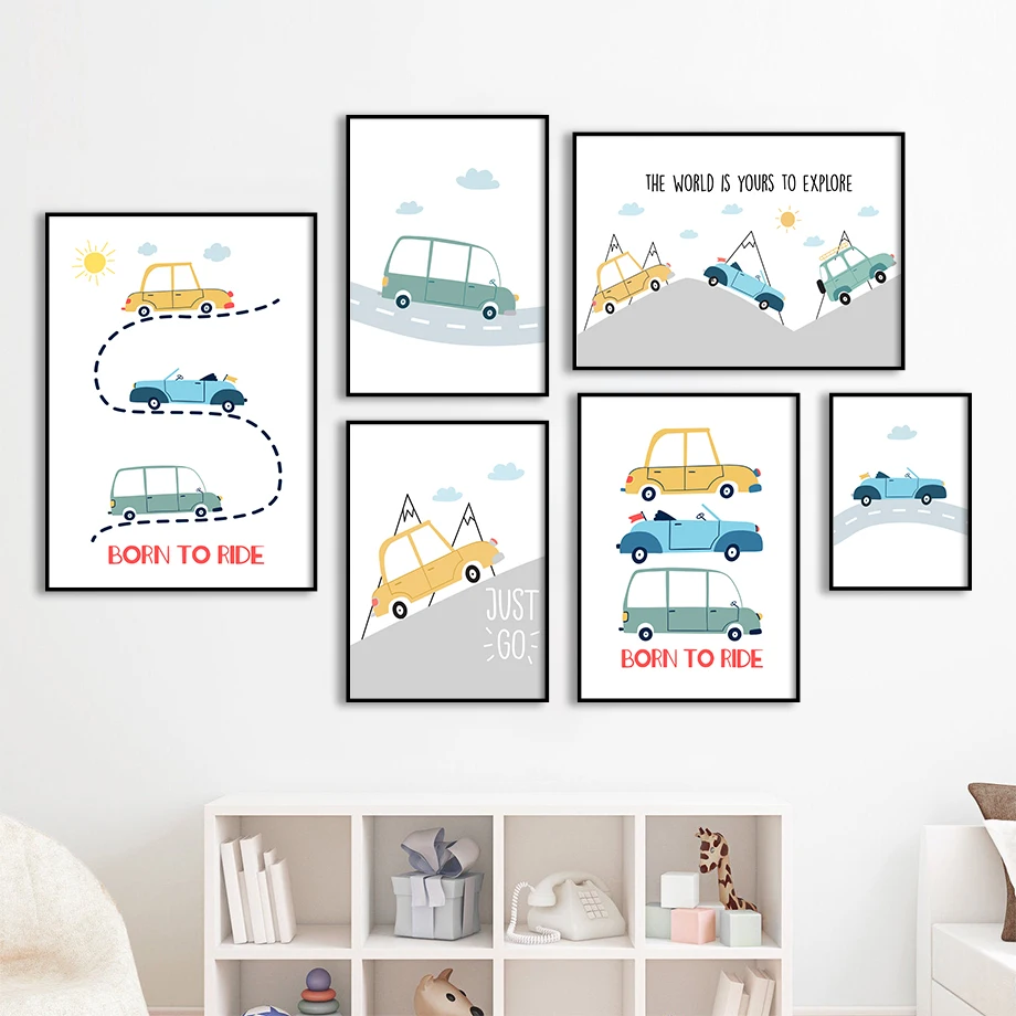 С автомобилем из мультфильма горный трек солнце цитаты Wall Art Холст Картина Nordic Плакаты и принты настенные картины для детской комнаты настенный Декор