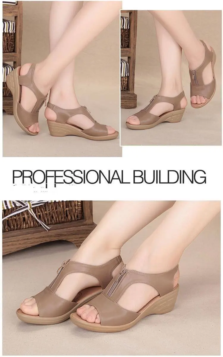 2021 новые летние женские сандалии; Модные кожаные туфли на высокой танкетке; Женские однотонные повседневные Босоножки на платформе с молнией
