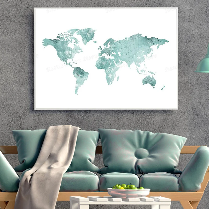 Карта мира подвесная картина мятно-зеленые украшения живопись гости...