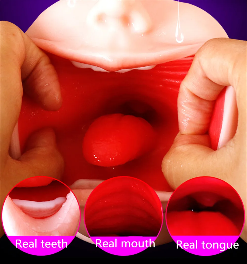 Мужской мастурбатор Реалистичная чашка для рта оральное сосание Глубокая глотка влагалище карманная киска сексуальный язык пенис секс-игрушки для мужчин 18
